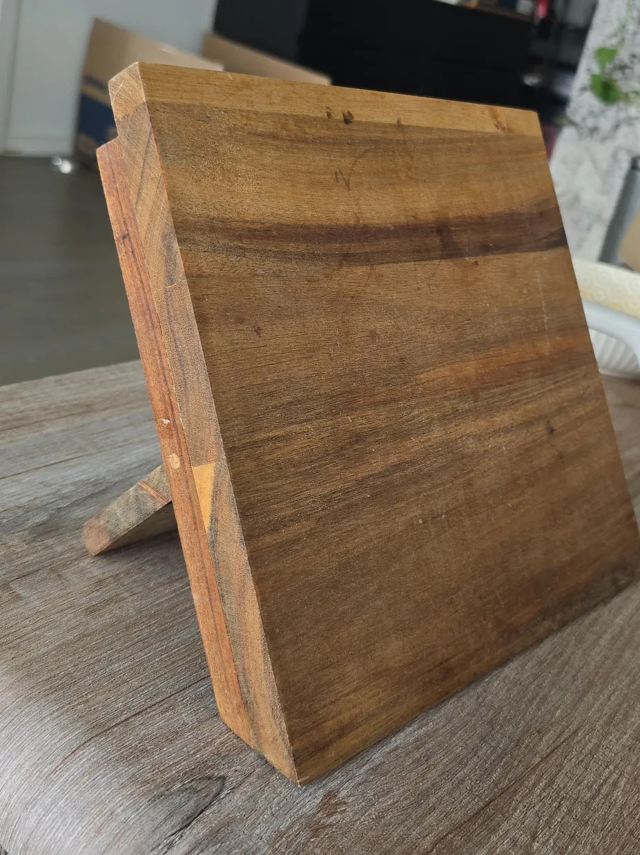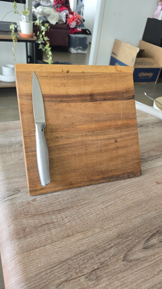 Selling a magnetic wooden knife block stand. It's in good condition and ready to hold your knives securely in the kitchen. can hold upto 5 knives depending on the size.