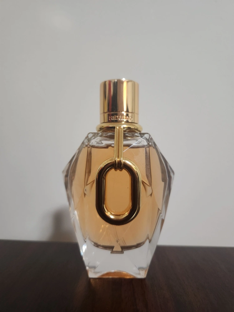 Authentic Paco Rabanne Million Gold For Her Eau de Parfum in its bold, jewel-inspired golden bottle design. This fragrance is glamorous, radiant, and feminine with a rich blend of floral, fruity, and warm sweet notes—perfect for evenings out or making a statement signature scent.