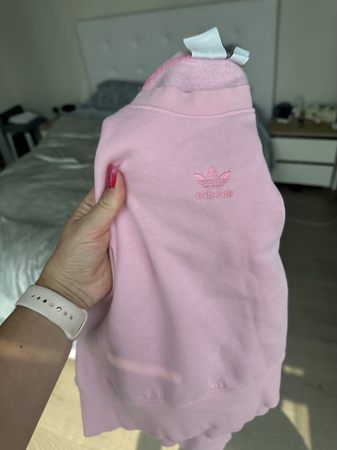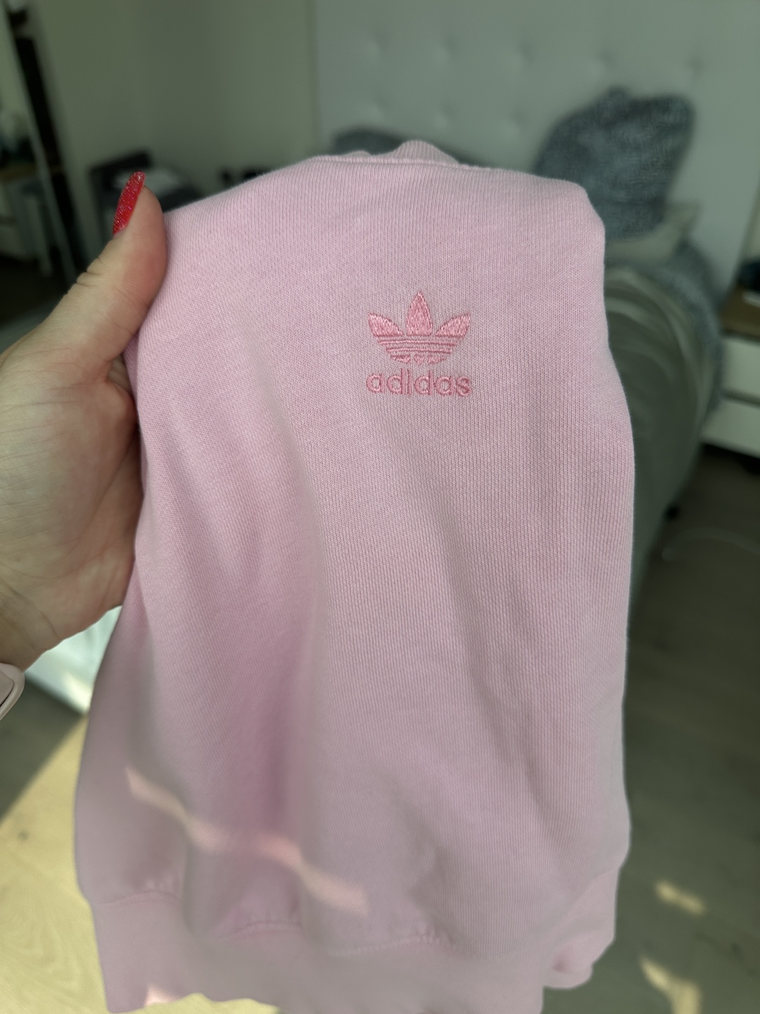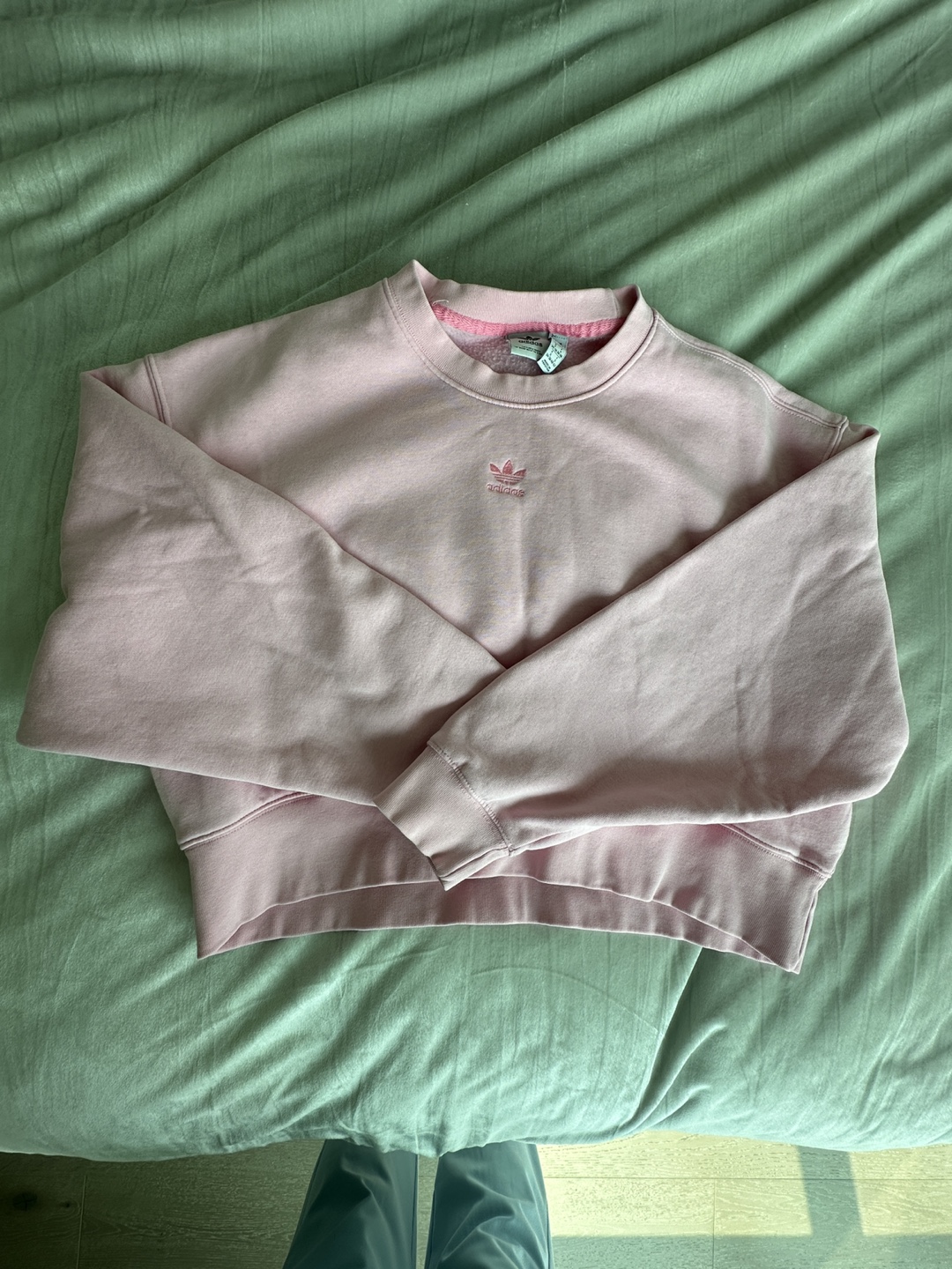 Selling an Adidas cropped sweatshirt in a lovely pink colour. It's in great condition and ready for a new home! Perfect for layering or wearing on its own.