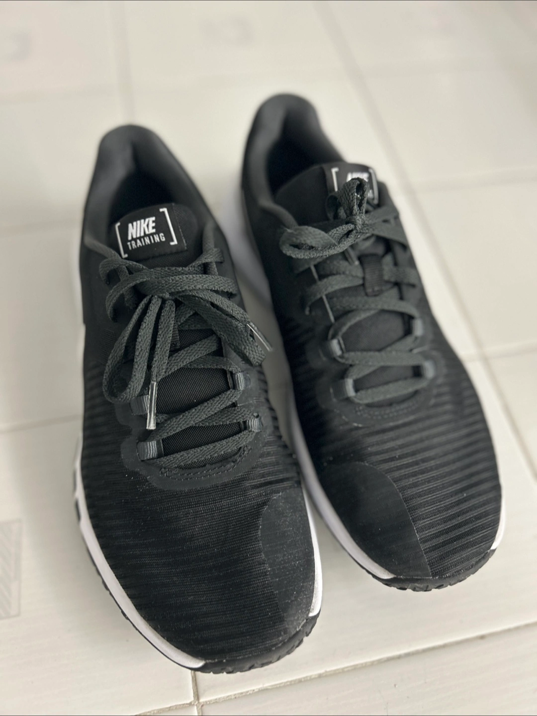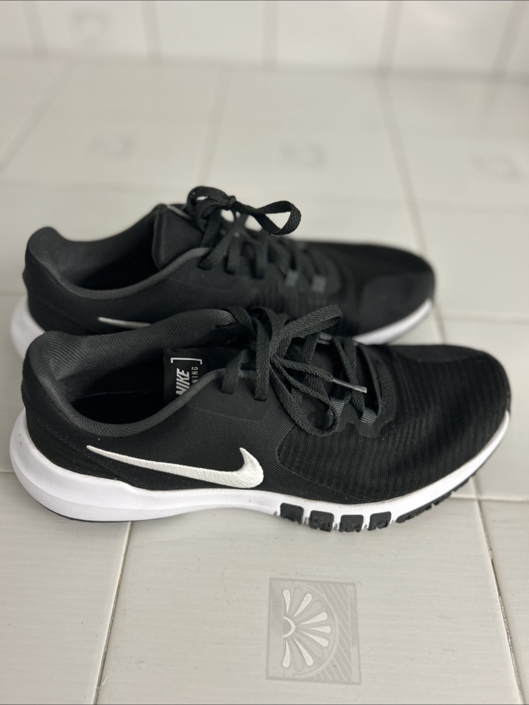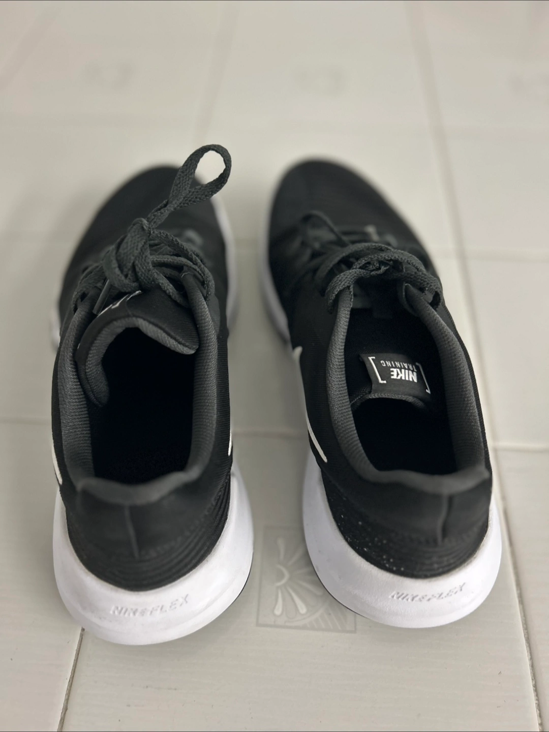 Selling a pair of Nike Flex training shoes in black. They have the iconic Nike swoosh on the side. Perfect for your next workout!