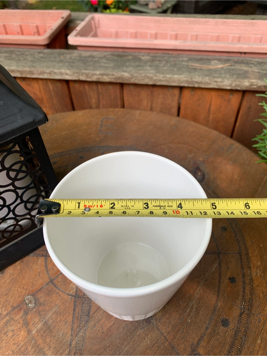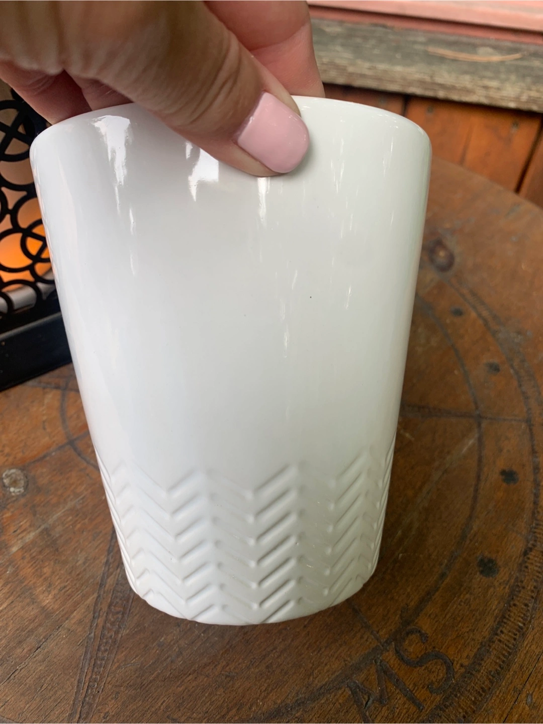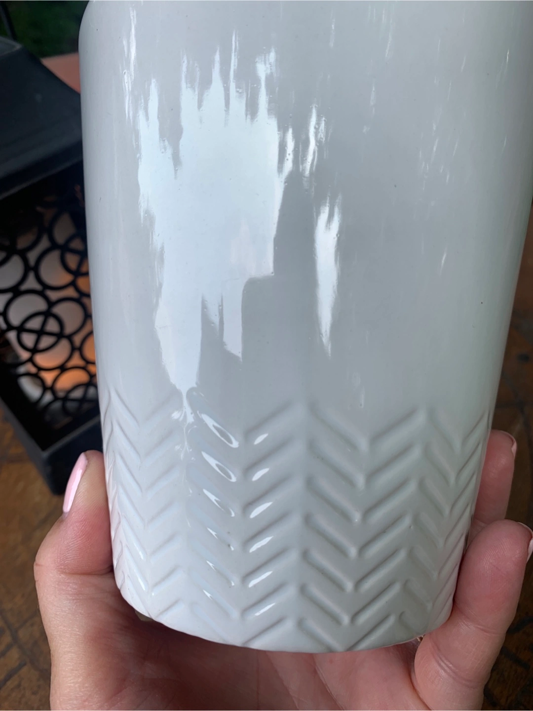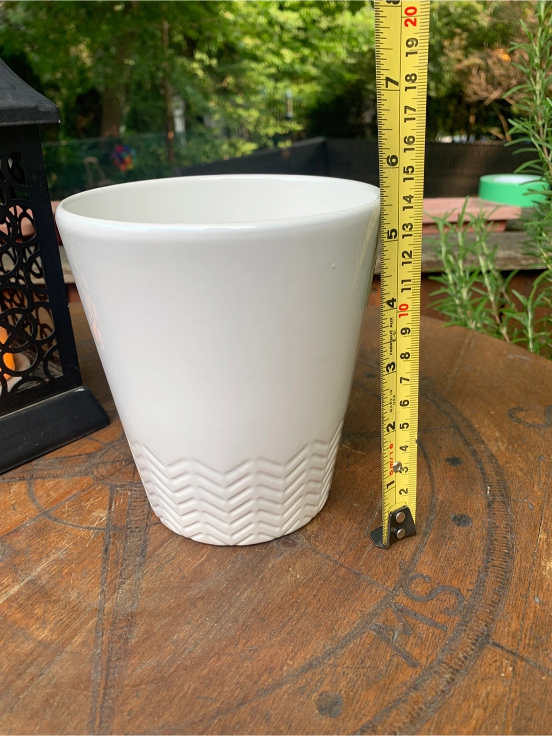 697Selling a simple yet stylish white ceramic planter! It has a subtle chevron pattern at the bottom, adding a touch of texture. Perfect for displaying your favourite plant or as a standalone decorative piece for your home. Has three little pads on the bottom for anti-scuff protection. No chips or cracks. Props not included. Cash only please.
