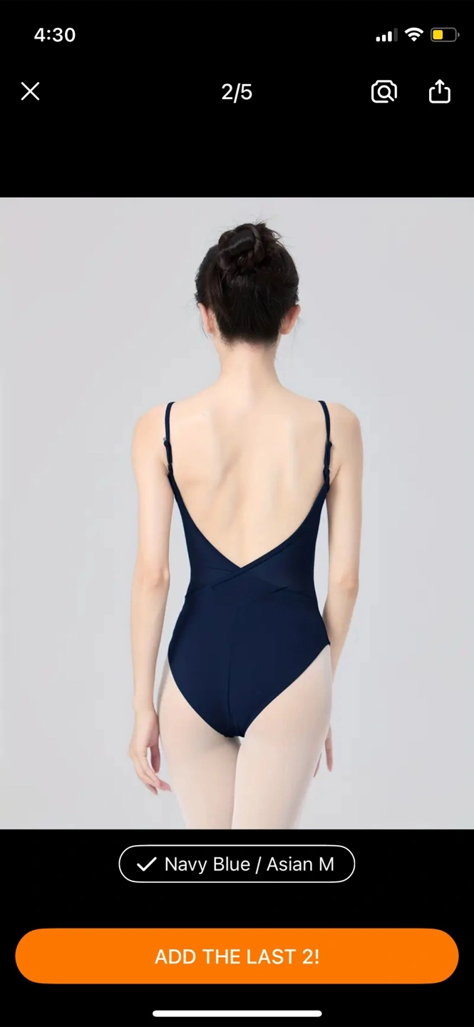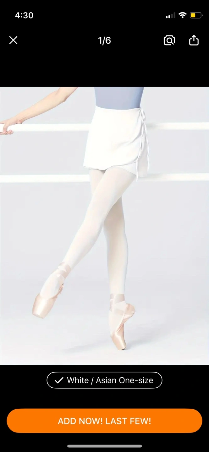 Selling a set of ballet items! Includes a navy blue leotard (Asian M), a white wrap skirt (one-size), flesh-coloured tights (2XL, height 62.99-68.9 inch), and pink ballet shoes (size 6.5)