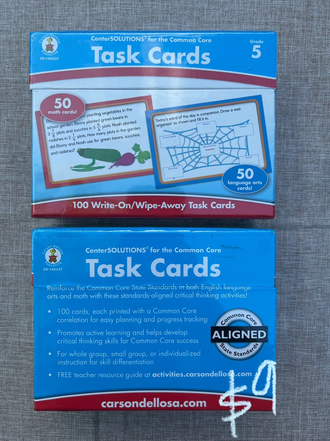 15I have a set of CenterSolutions Task Cards for Grade 5! These cards reinforce the Common Core State Standards in both English language arts and math. There are 100 cards included, each printed with a Common Core correlation for easy planning and progress tracking. They're great for whole group, small group, or individualized instruction