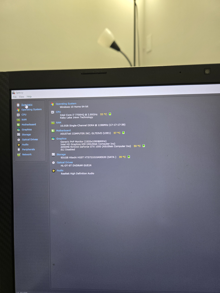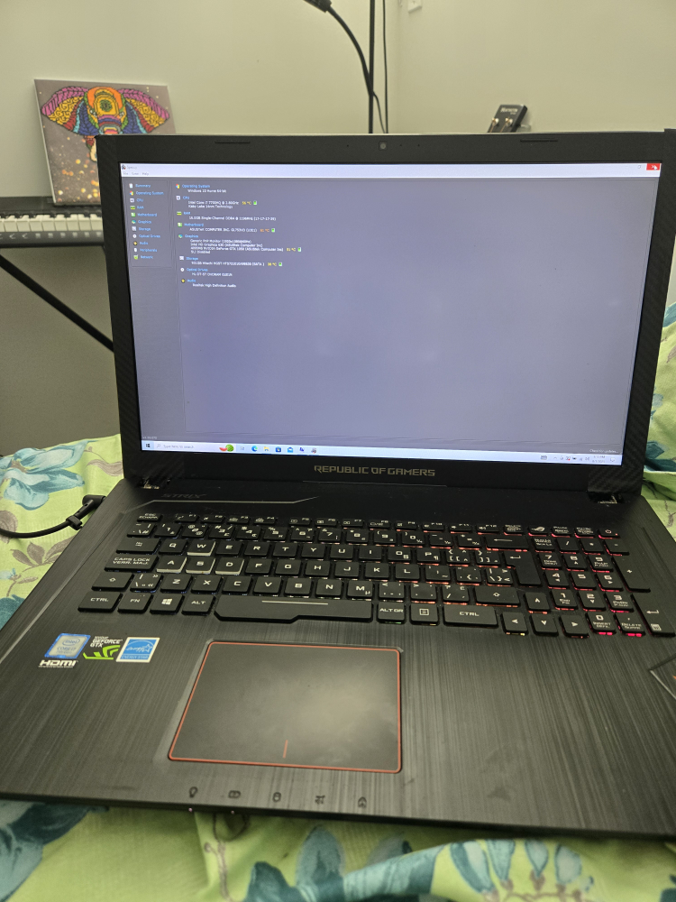Selling an ASUS Republic of Gamers laptop. Comes with a charger. Runs fast and can play games like dead by daulight no issues. A hinge was broken off got that repaired recently as shown in the photos. It features an Intel Core i7-7700HQ processor, 16GB of RAM, and a NVIDIA GeForce GTX 1050 graphics card. Haven't been using for last few years since I have a PC