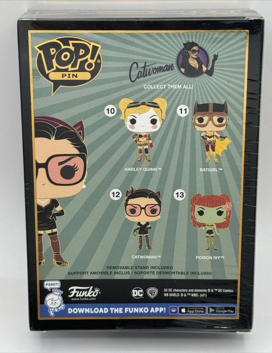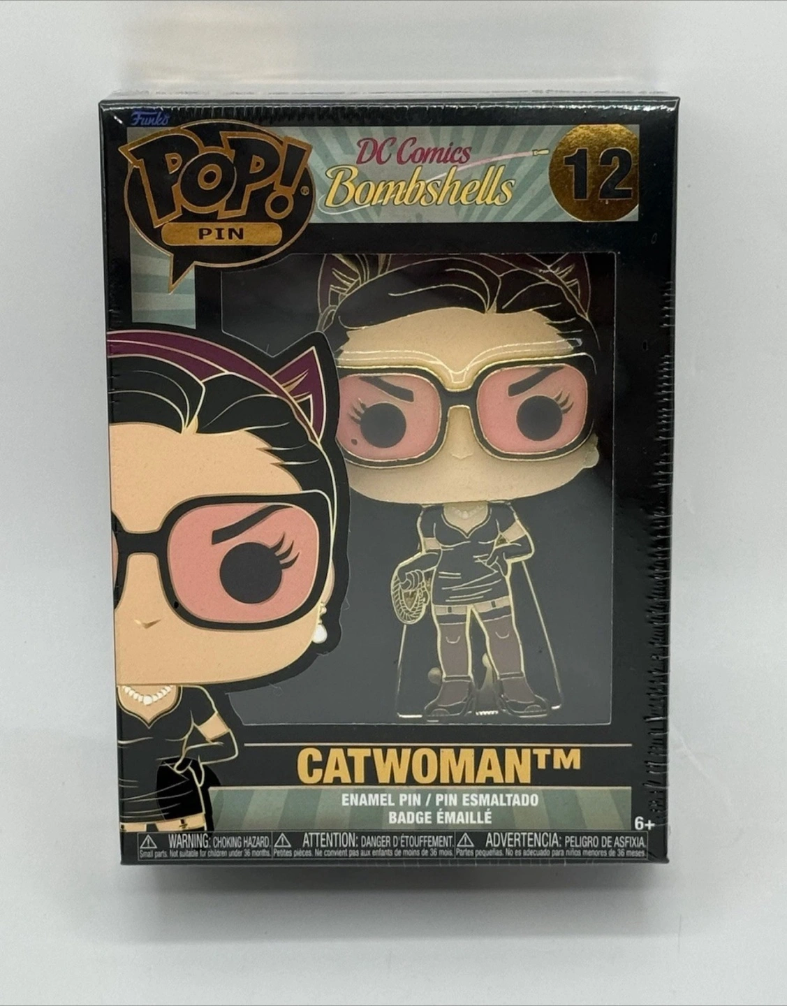 Selling a Funko Pop! Pin from the DC Bombshells series, featuring Catwoman as #12! This enamel pin is brand new in its original packaging. The box includes a removable stand for display. A great addition to any collection!