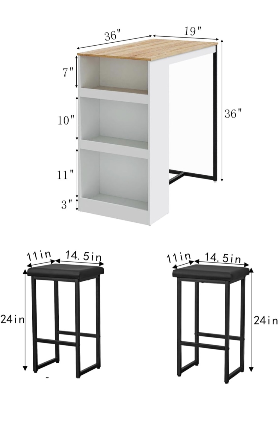 Stool height: 24 inches