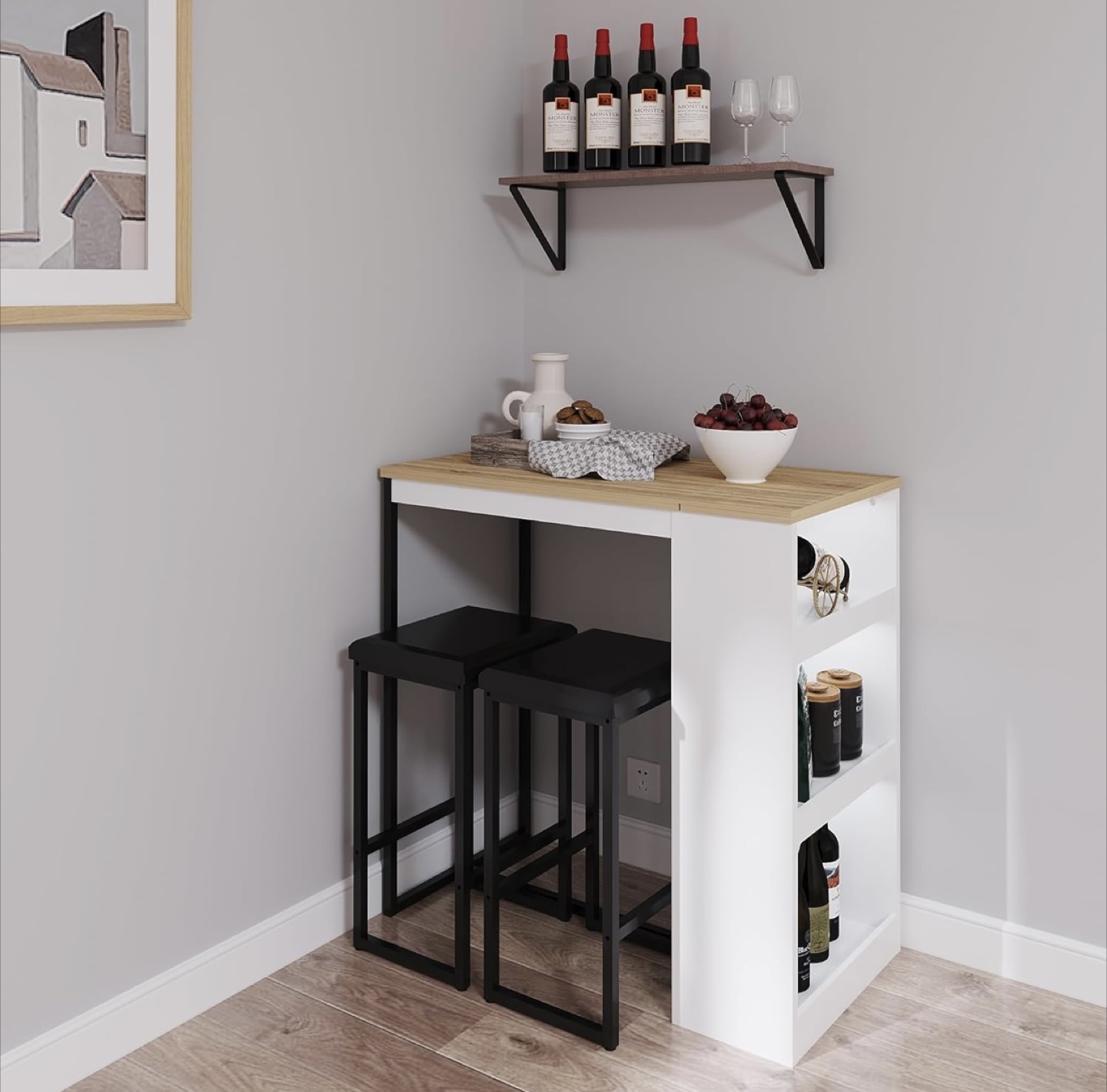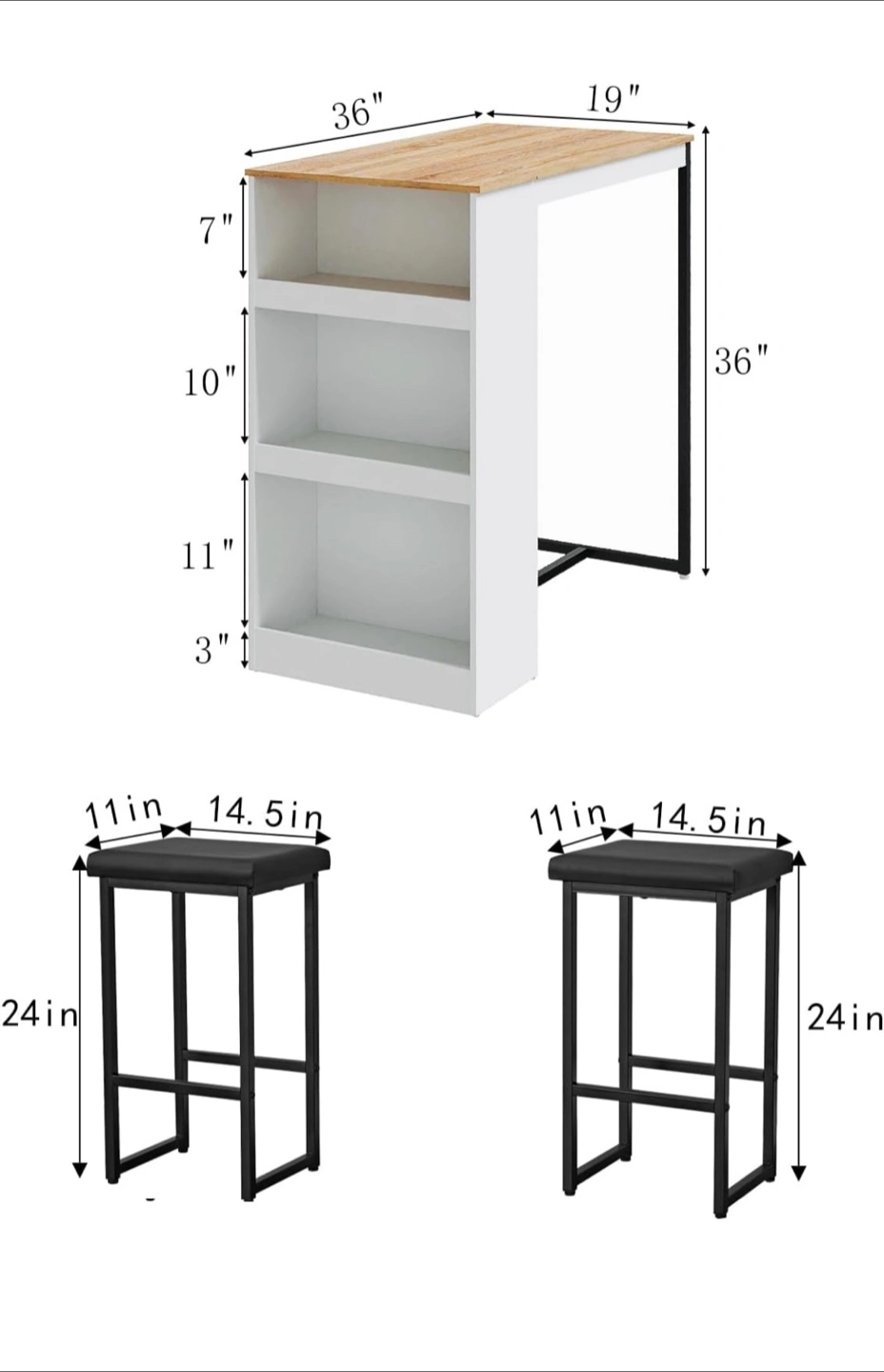Bar Table with 2 Stools - White/Black with storage