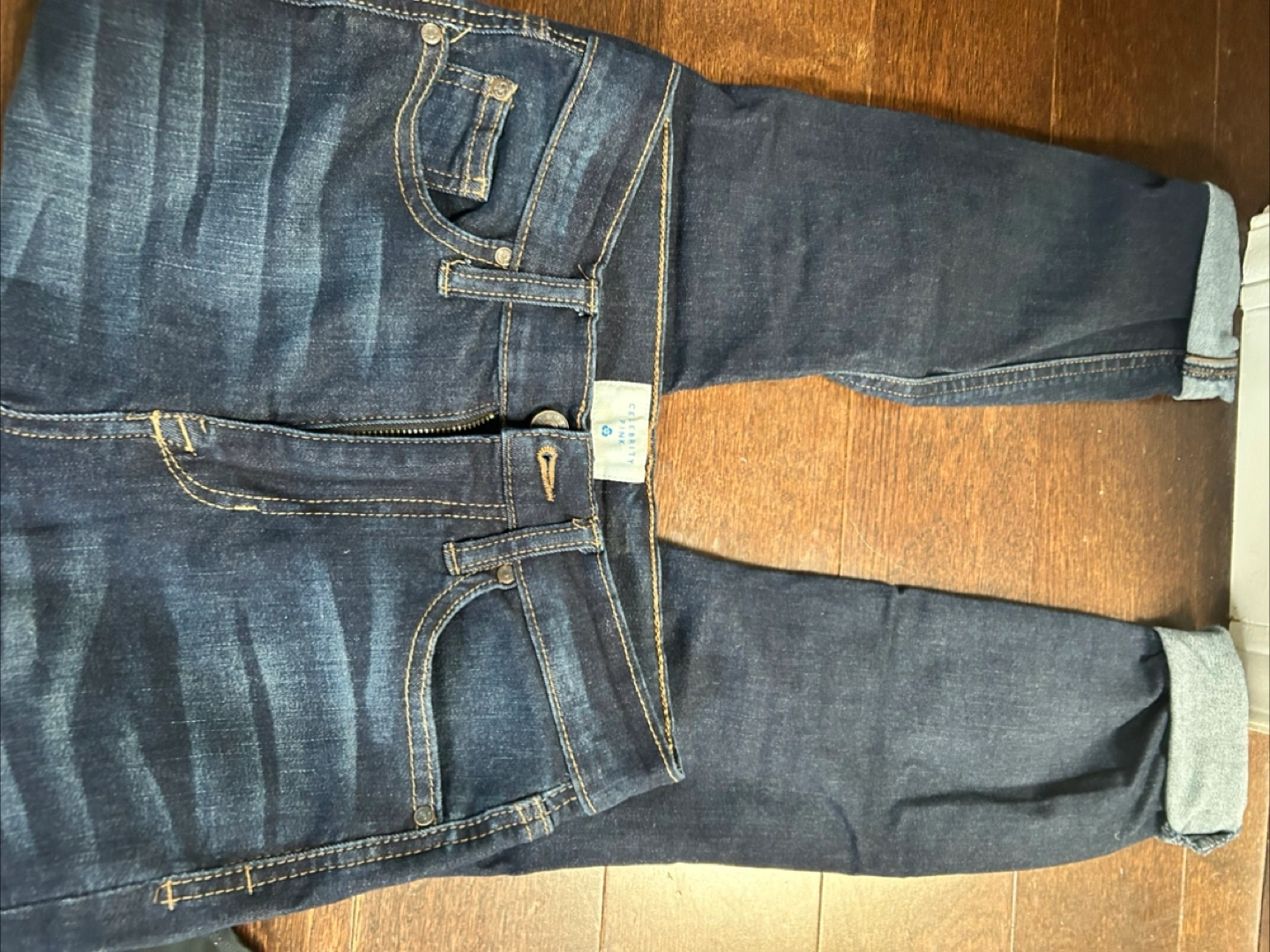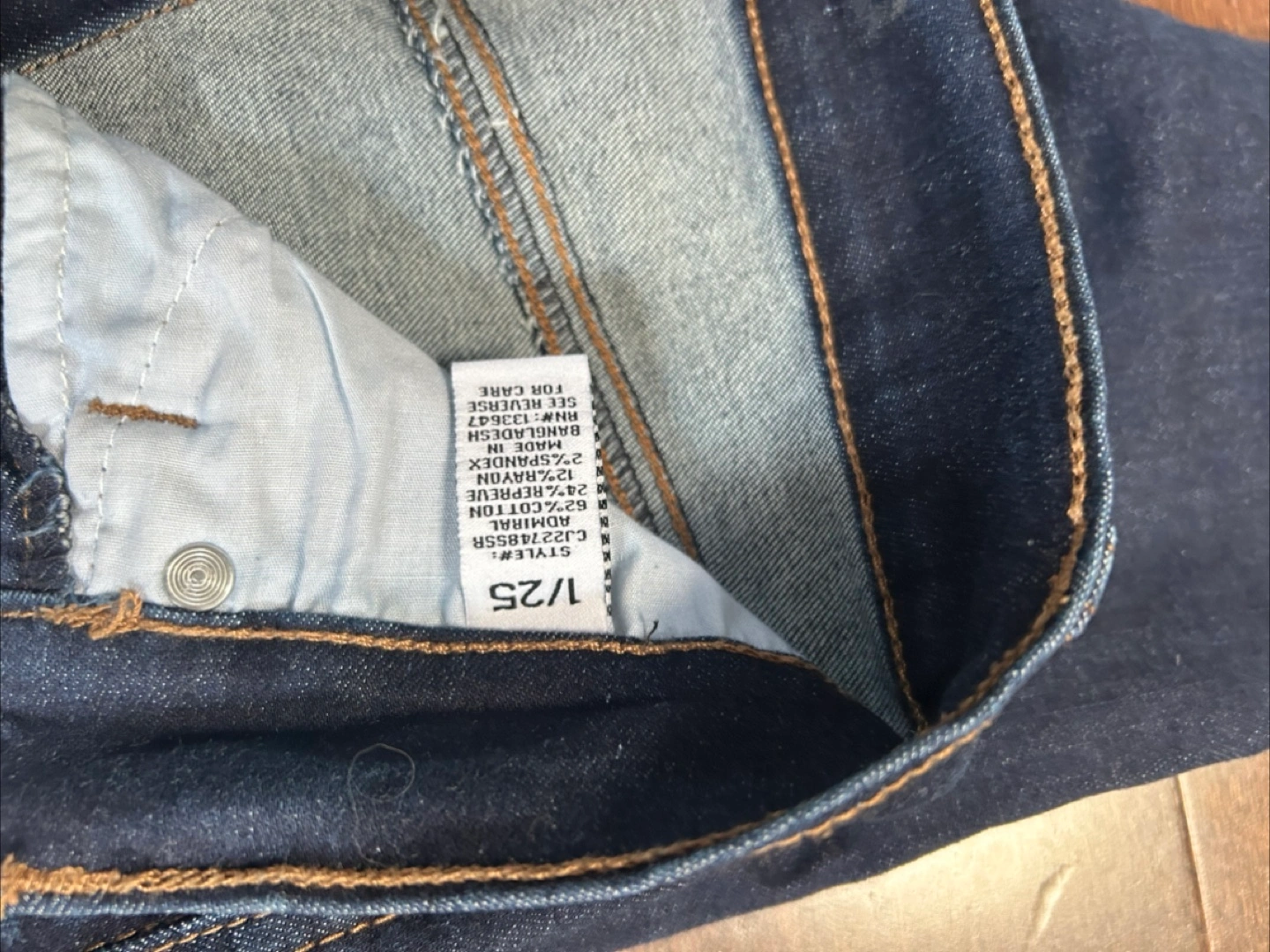Selling a pair of Celine Admiral jeans in a dark wash. They're size 1/25 and made from 62% cotton, 24% rayon, 12% polyester, and 2% spandex. Great condition and super comfy!