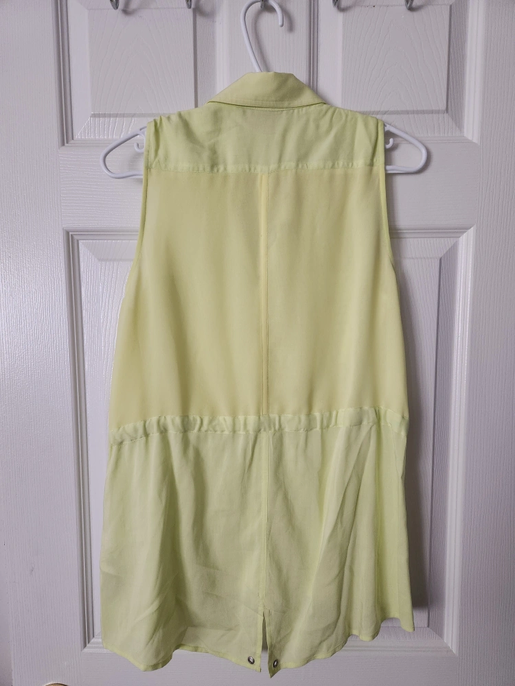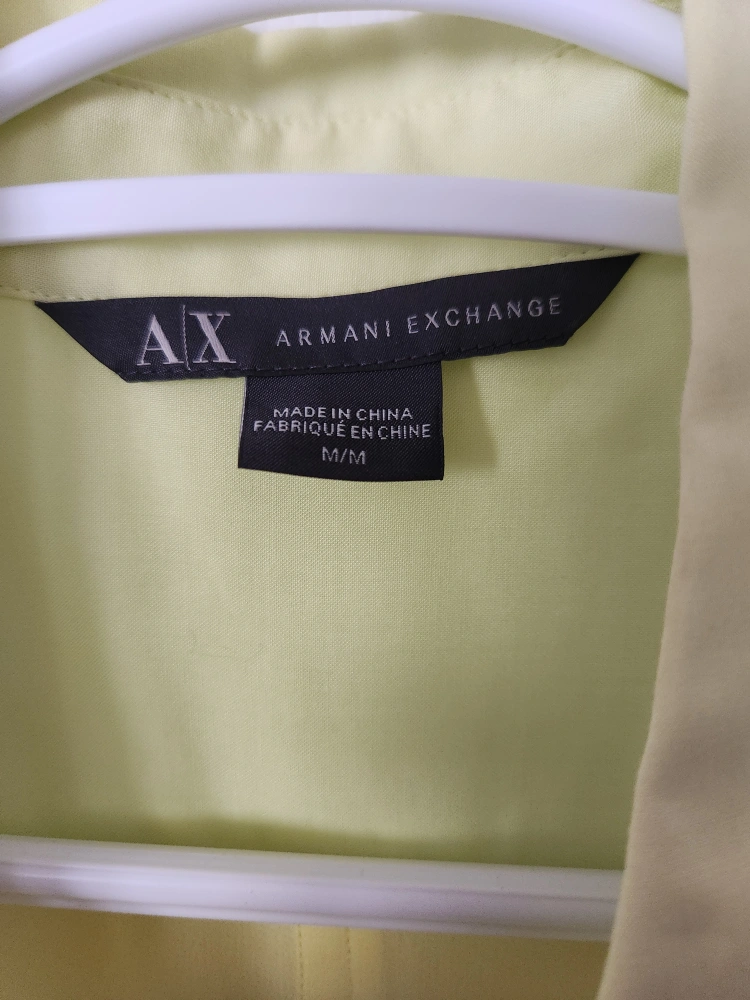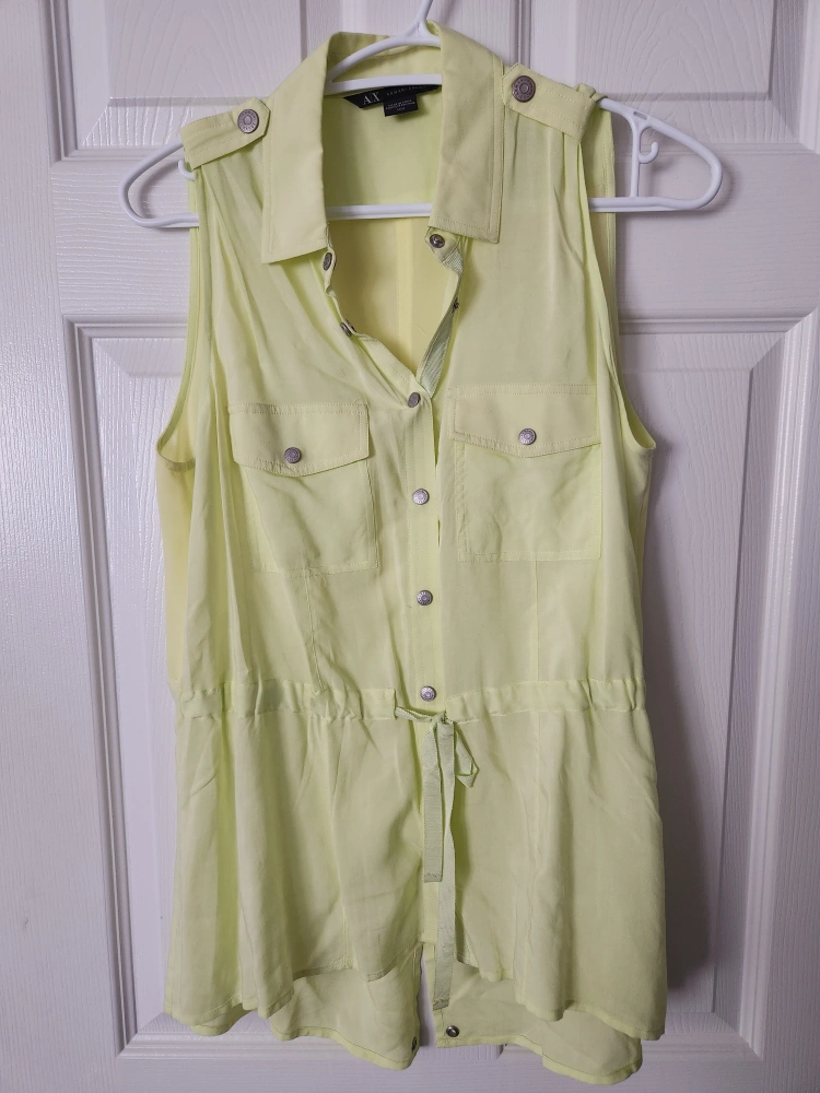 I'm selling an Armani Exchange sleeveless top. It's a light yellow colour and is marked as size M/M on the tag