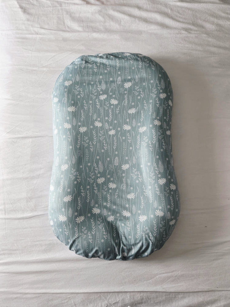 Snuggle Me Organic Infant Lounger with a soft cover in new condition.