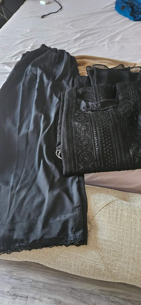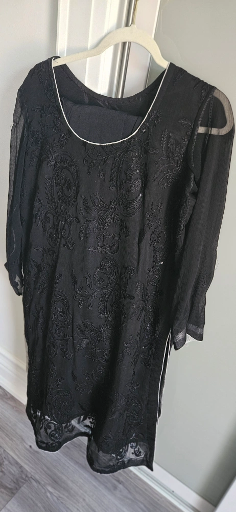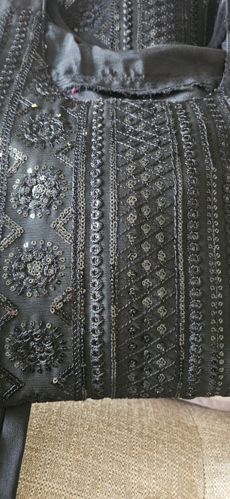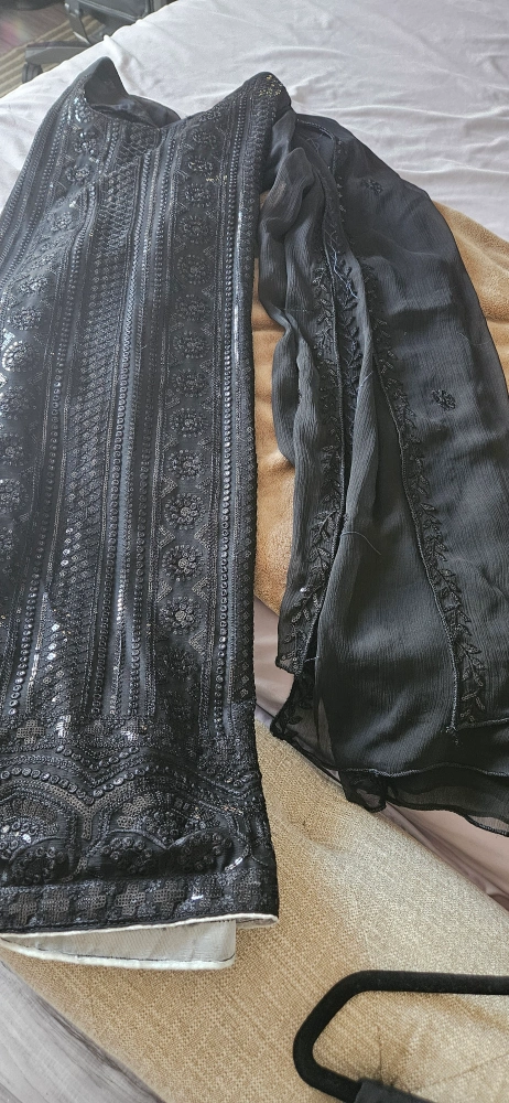 Selling a beautiful black salwar kameez suit. It features intricate embroidery and a delicate design. Perfect for special occasions or adding a touch of elegance to your wardrobe large size midum can fit as well .