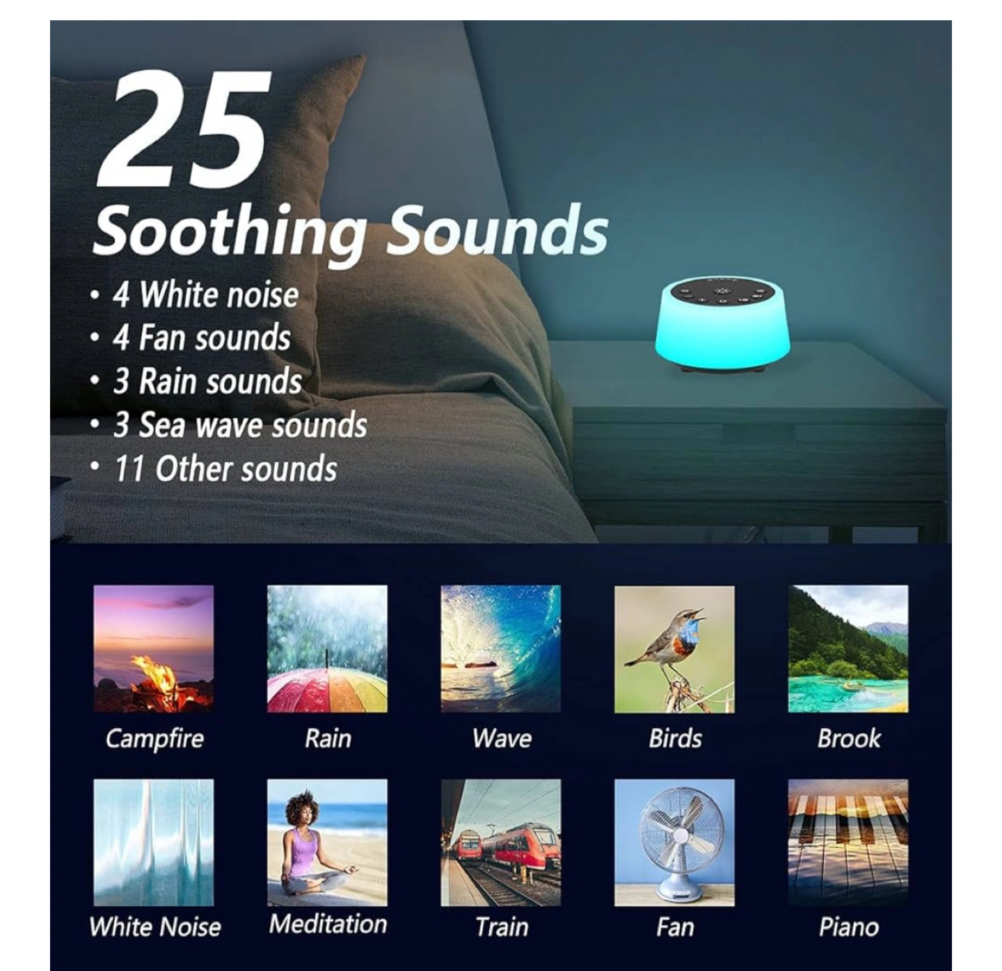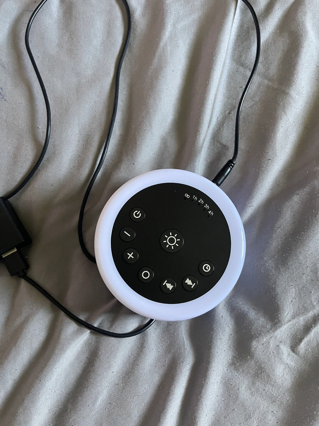 Selling a white noise sound machine. It has a variety of sound options and a timer. Perfect for creating a calming environment for sleep or relaxation