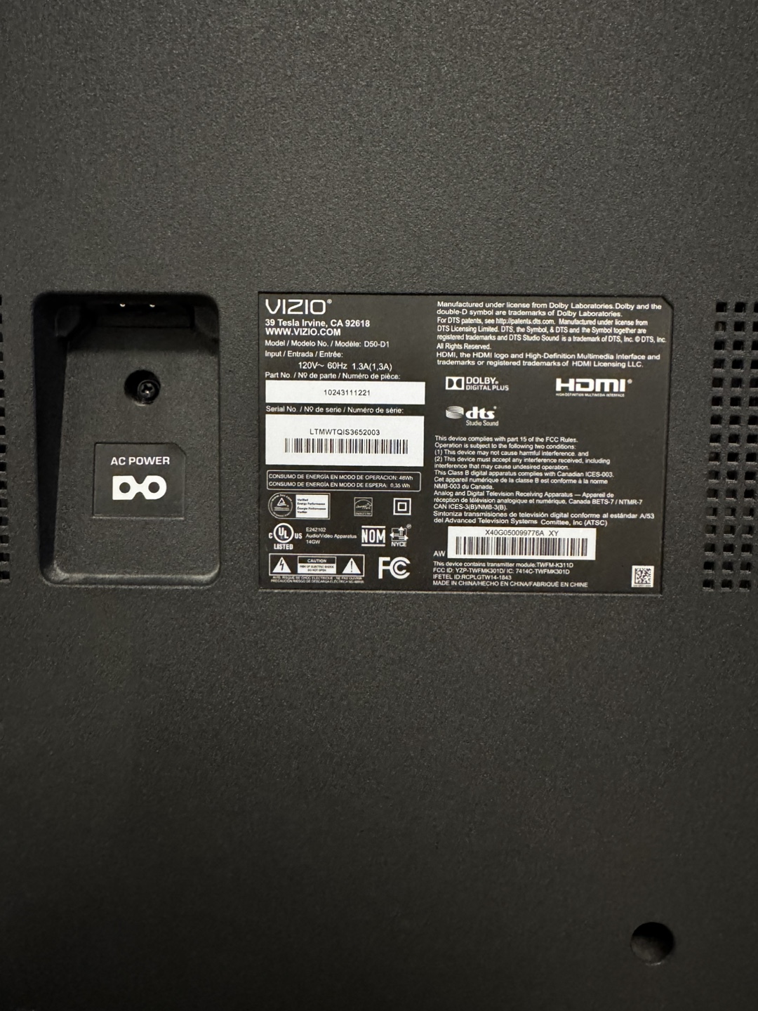 Selling a Vizio 50-inch Class Full Array LED Smart TV, model D50-D1. It's in great condition and ready for a new home! Perfect for streaming your favorite shows and movies! Currently sales at $435!