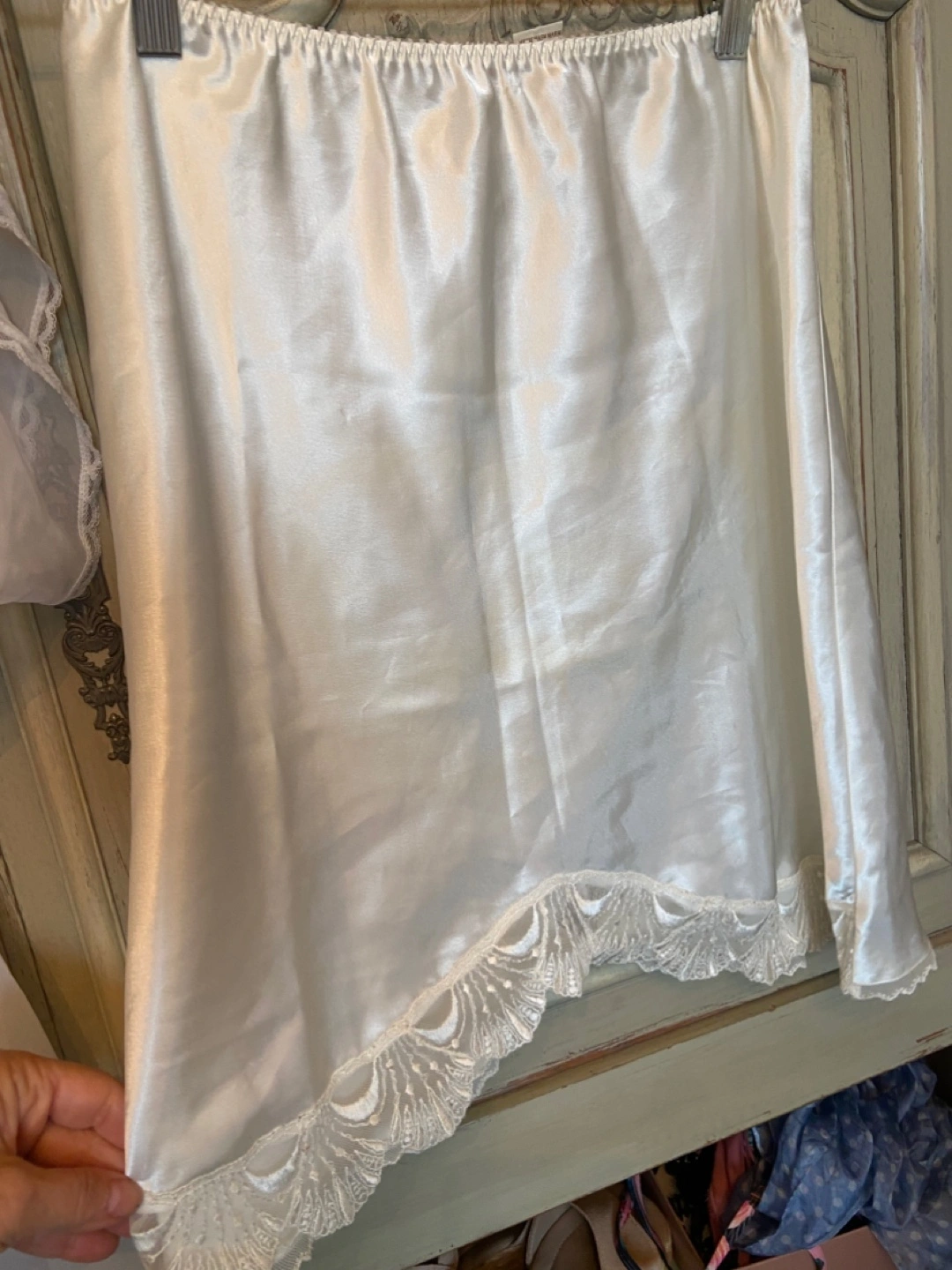 Selling a lovely Victoria's Secret slip in size medium! It's a beautiful white colour and made of 78% polyester and 22% rayon. The trim is 78% nylon and 22% rayon. It's in great condition and ready for a new home