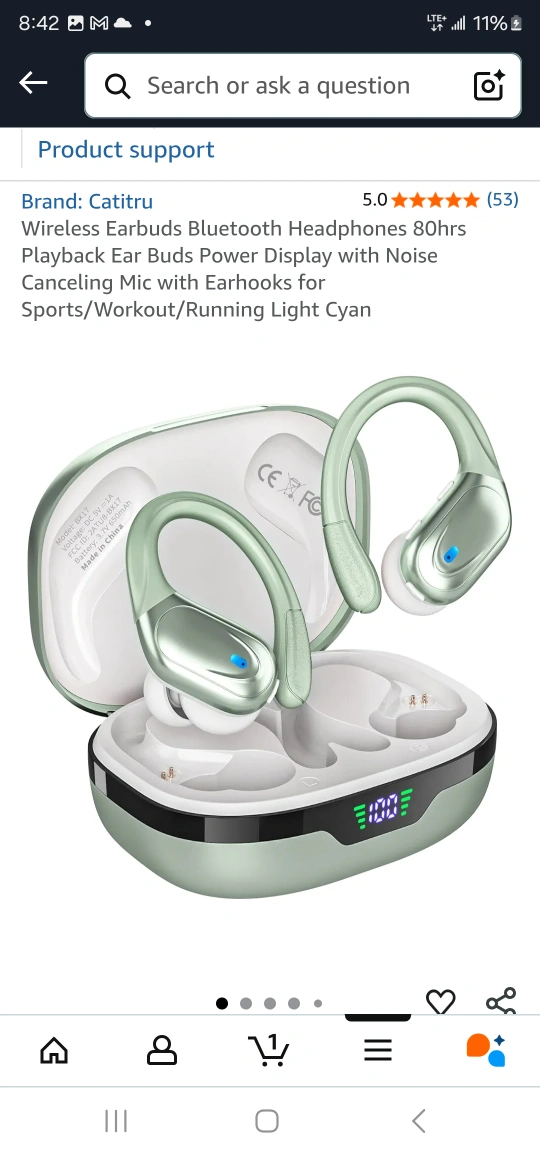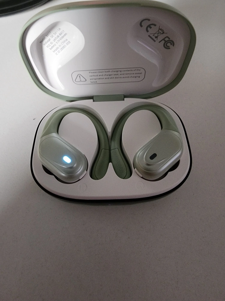 Selling a pair of Catitru wireless sports earbuds in a light cyan colour.