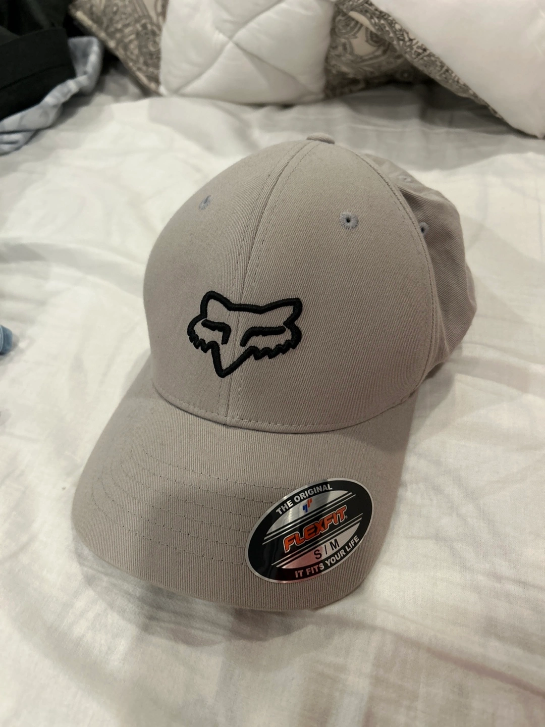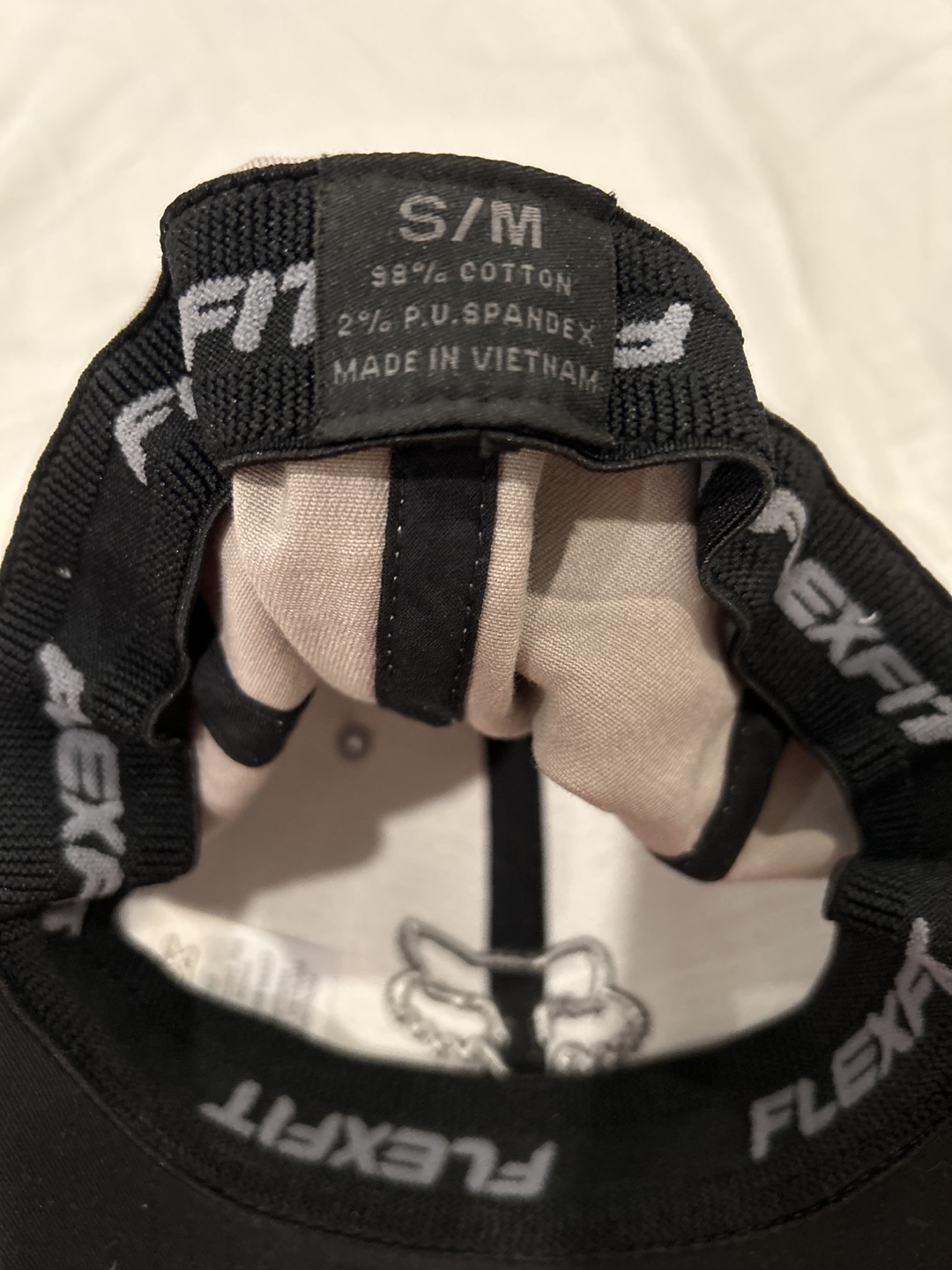Selling a Fox Racing Flexfit hat in size S/M. It's a stylish and comfortable hat with the iconic Fox logo. The hat is made of 98% cotton and 2% P.U. Spandex.