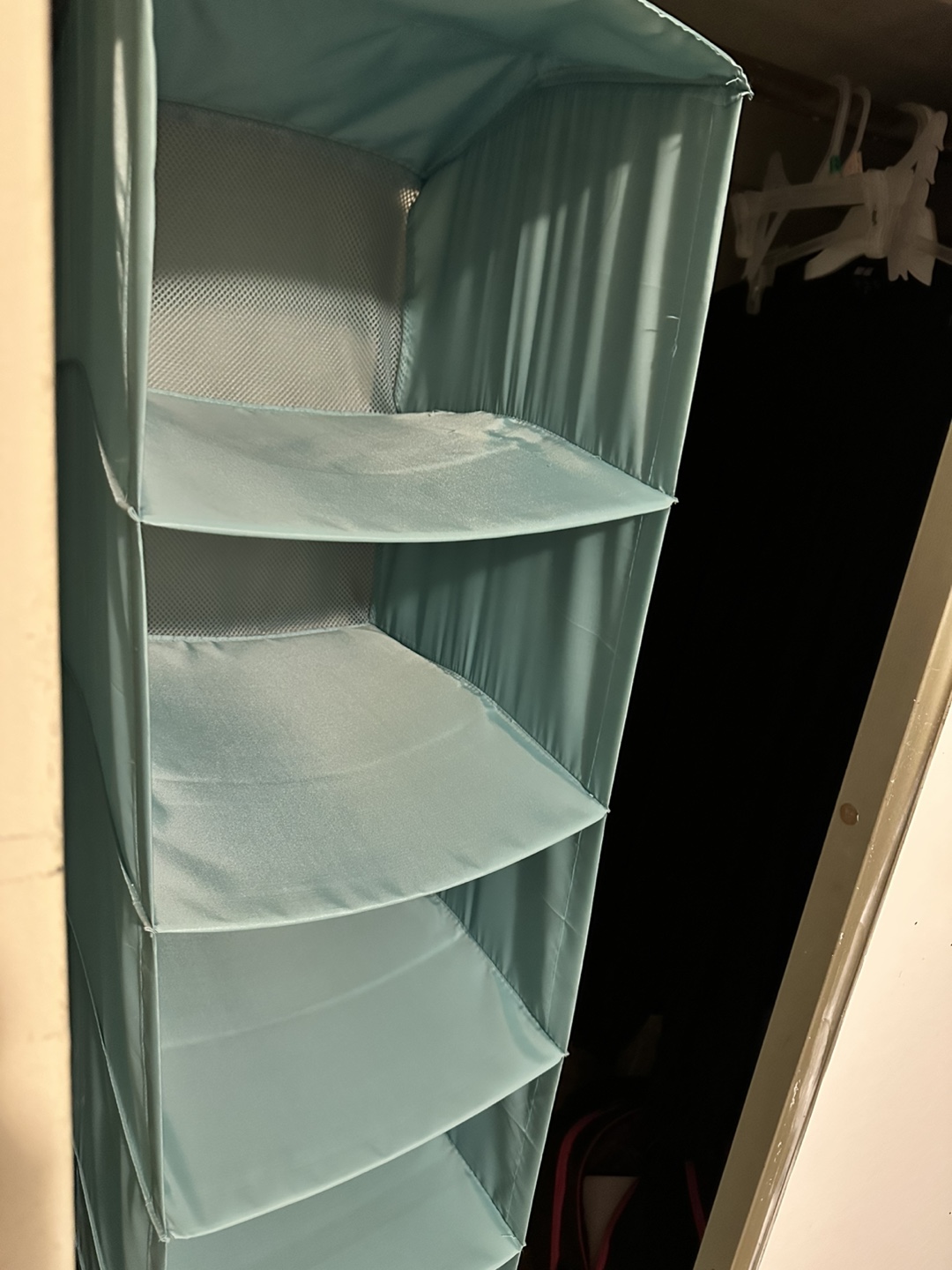Closet hanging organizer! Deep & can hold so much. It features six shelves, perfect for storing clothes, shoes, or accessories. The organizer easily hangs from your closet rod, making it a simple and effective storage solution.