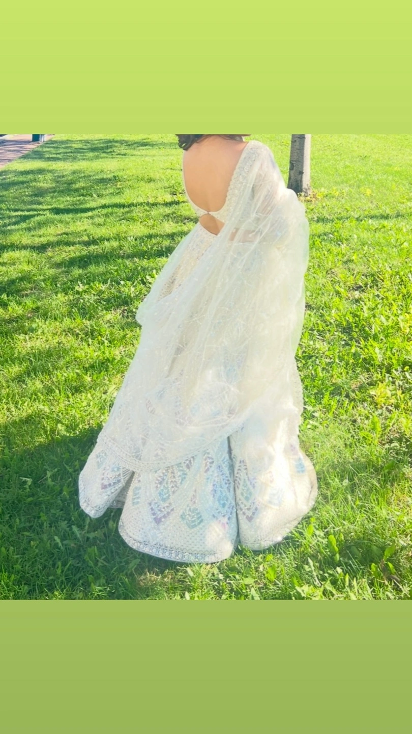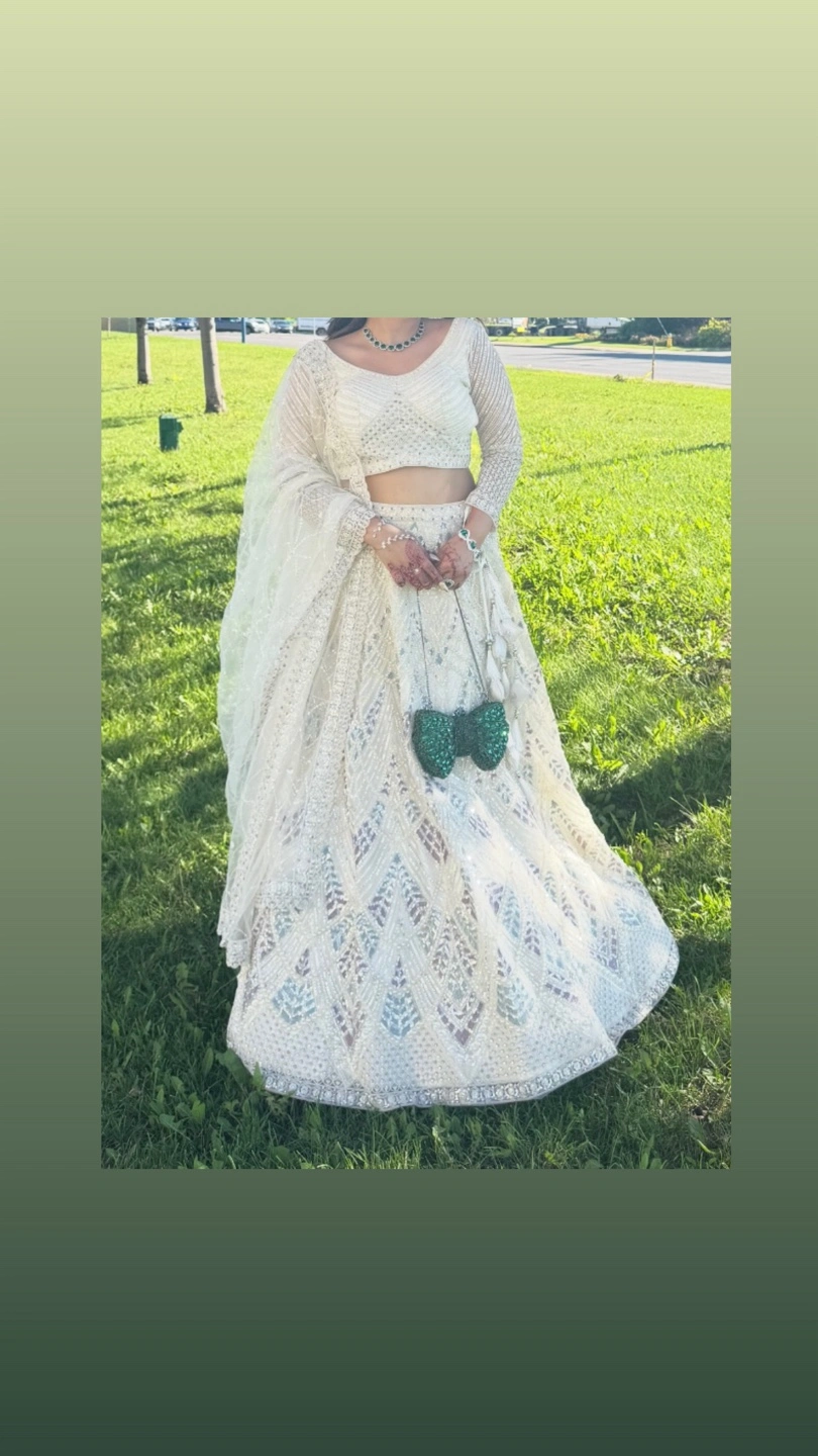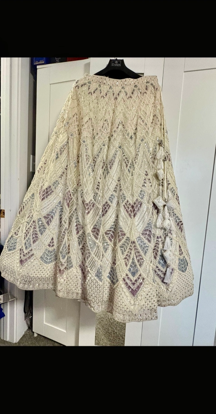 Selling a beautiful cream lehenga! It features intricate detailing and a unique pattern. Perfect for special occasions or cultural events. It's in great condition and ready for pickup