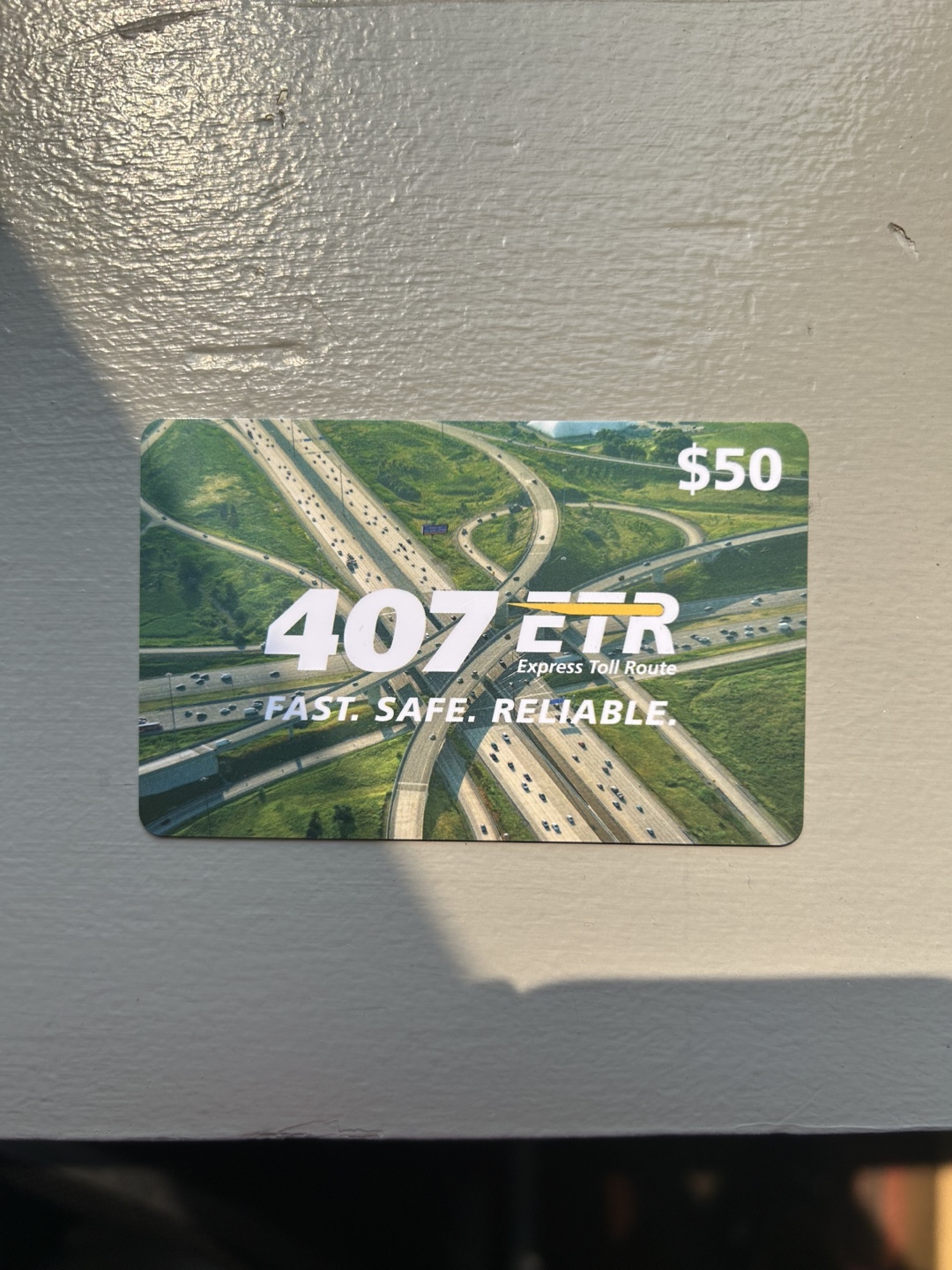 Selling a 407 ETR $50 giftcard for the Express Toll Route! It's a great way to save on tolls if you frequently use the 407 ETR. Fast, safe, and reliable!
