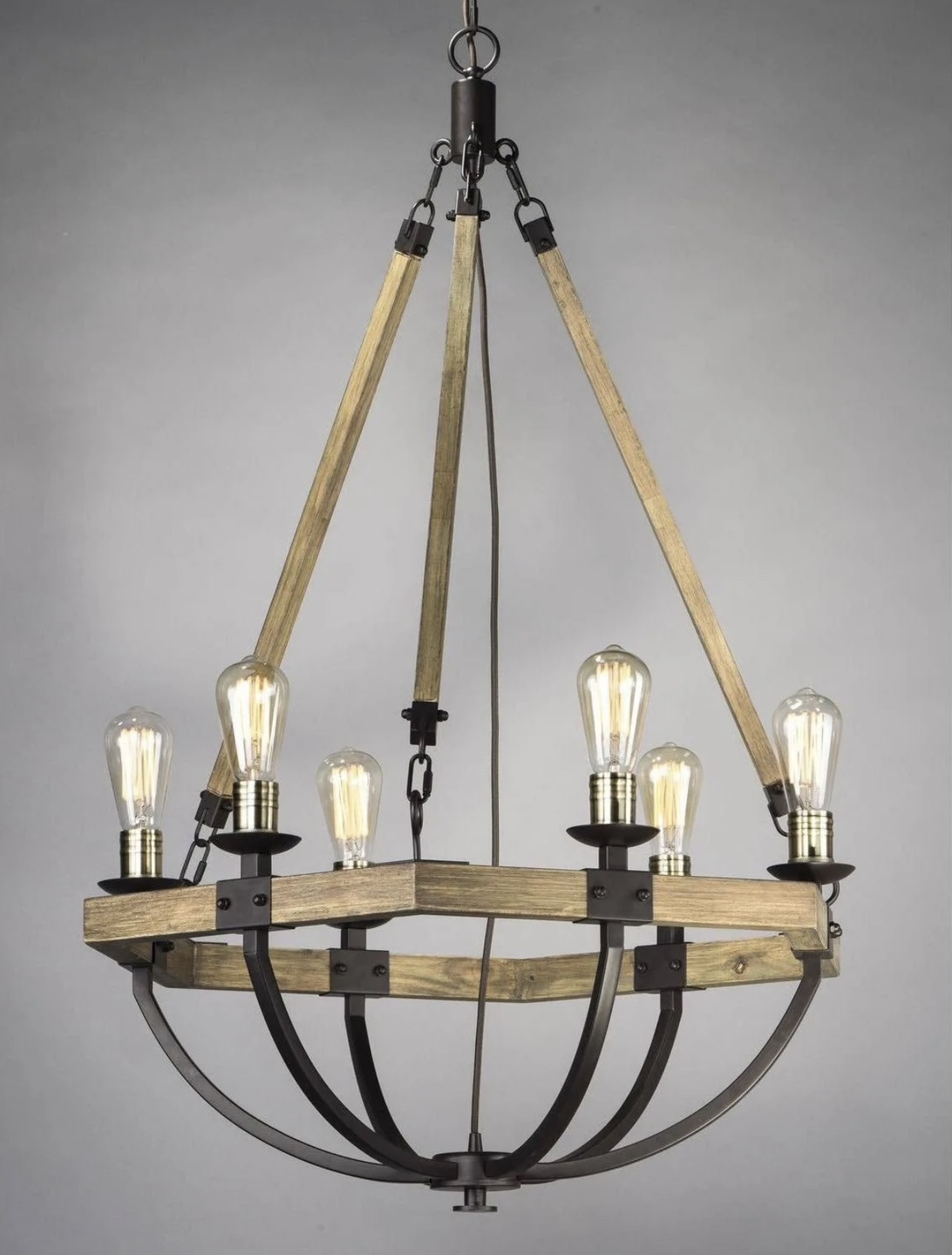 ⭐️BRAND NEW Weathered Wood with Bronze iron accents 6 light chandelier⭐️