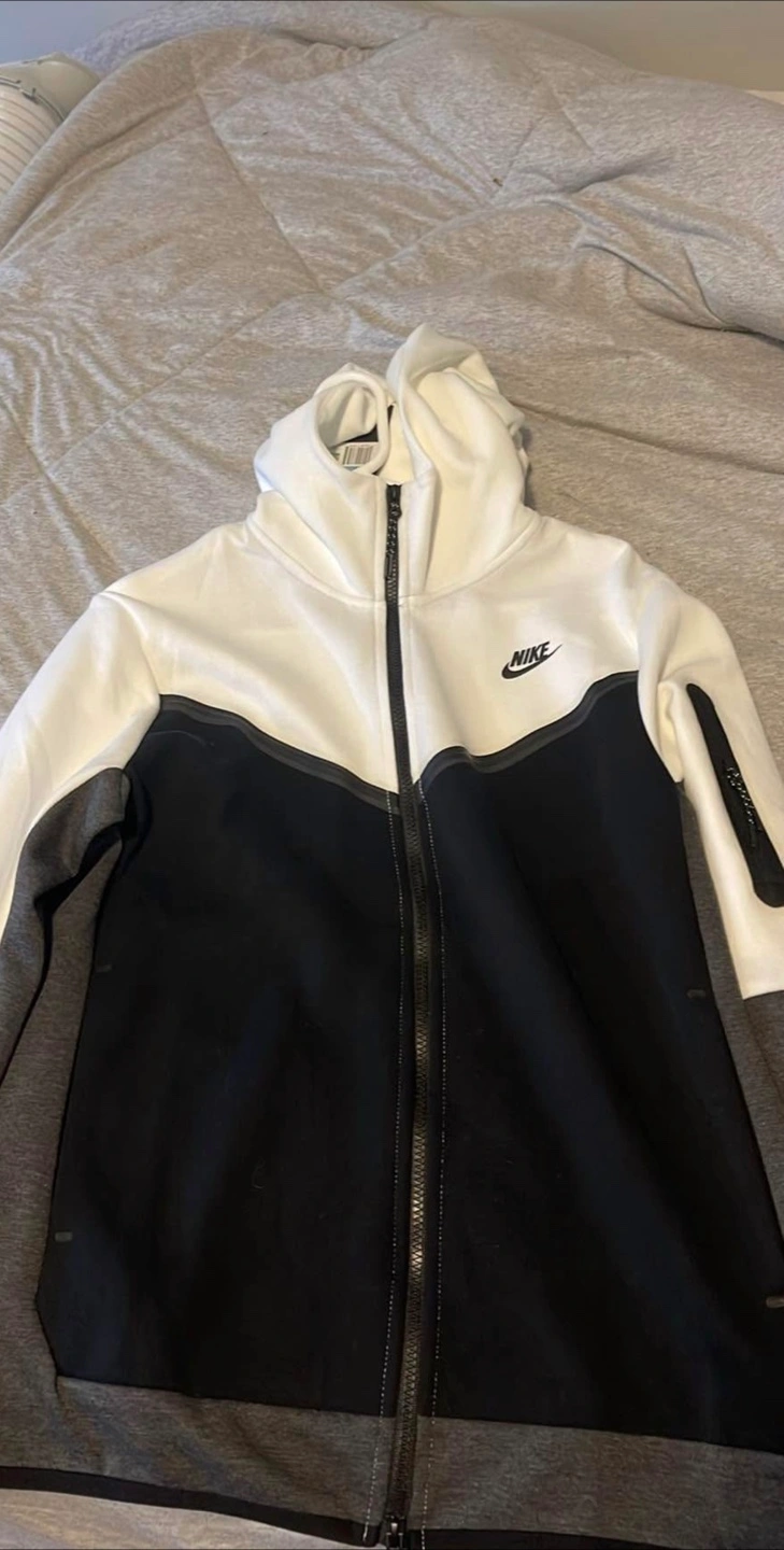 Selling a Nike Tech Fleece hoodie in black and white! It's a size medium and in great condition. Perfect for staying cozy!