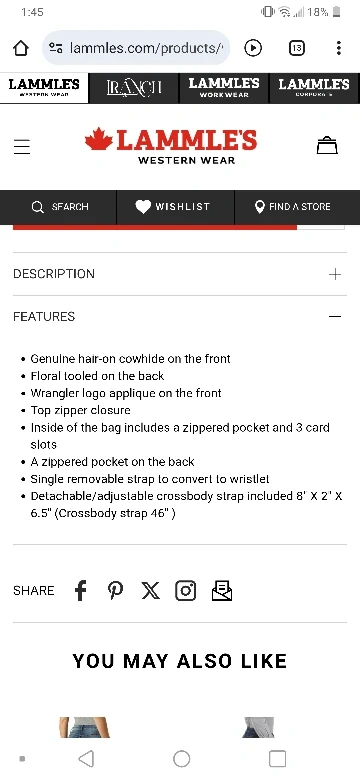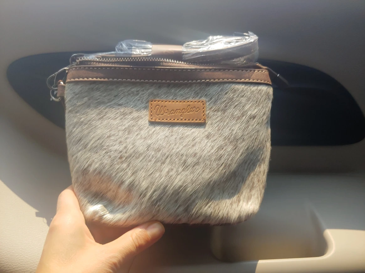 New genuine hair on cowhide Wrangler bag! It features a unique hair on cowhide on one side and beautiful floral embossed PU leather on the other. It's brand new with tags and comes with an adjustable strap and wristlet. made of PU leather.