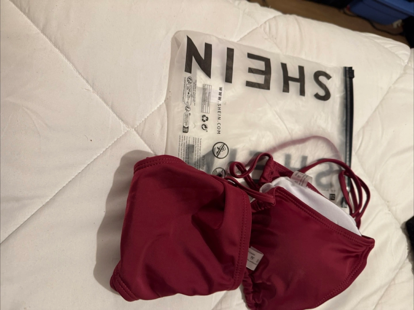 11Selling a Shein swimsuit in a lovely burgundy colour! It's a size small and comes with its original packaging