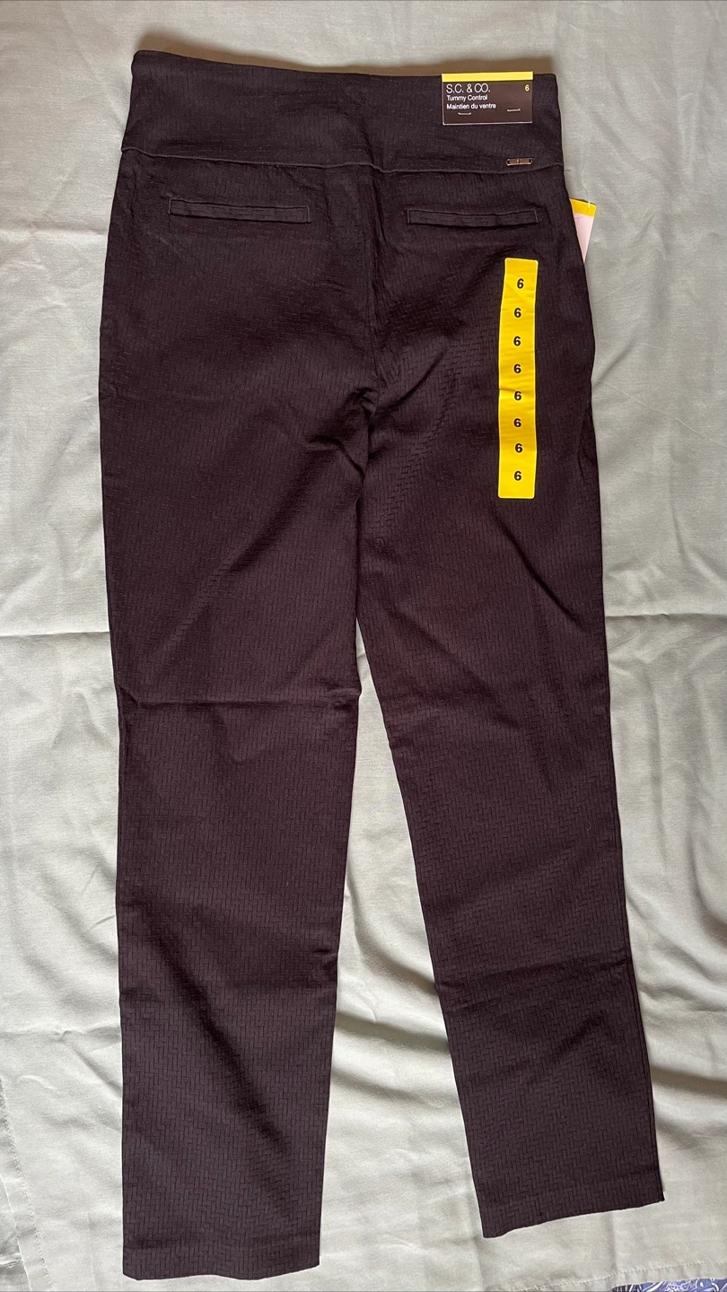 Selling a brand new pair of S.C. & Co. women's pants. They are a size 6 and still have the tags on! The pants have a subtle textured pattern.