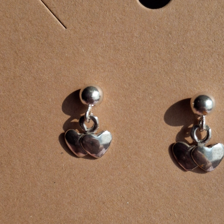Cute pair of sterling silver heart drop earrings! These are ready to add a touch of sweetness to your look