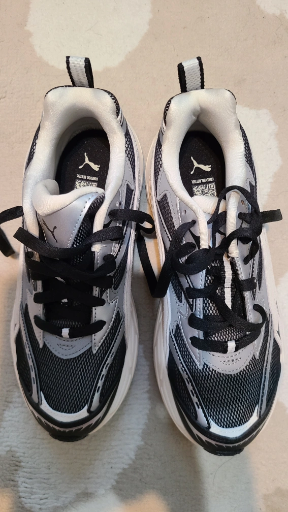 Selling a pair of Puma running shoes in great condition! They're a US size 7. These shoes are perfect for running or everyday wear. They feature a sleek design with black laces and a comfortable fit