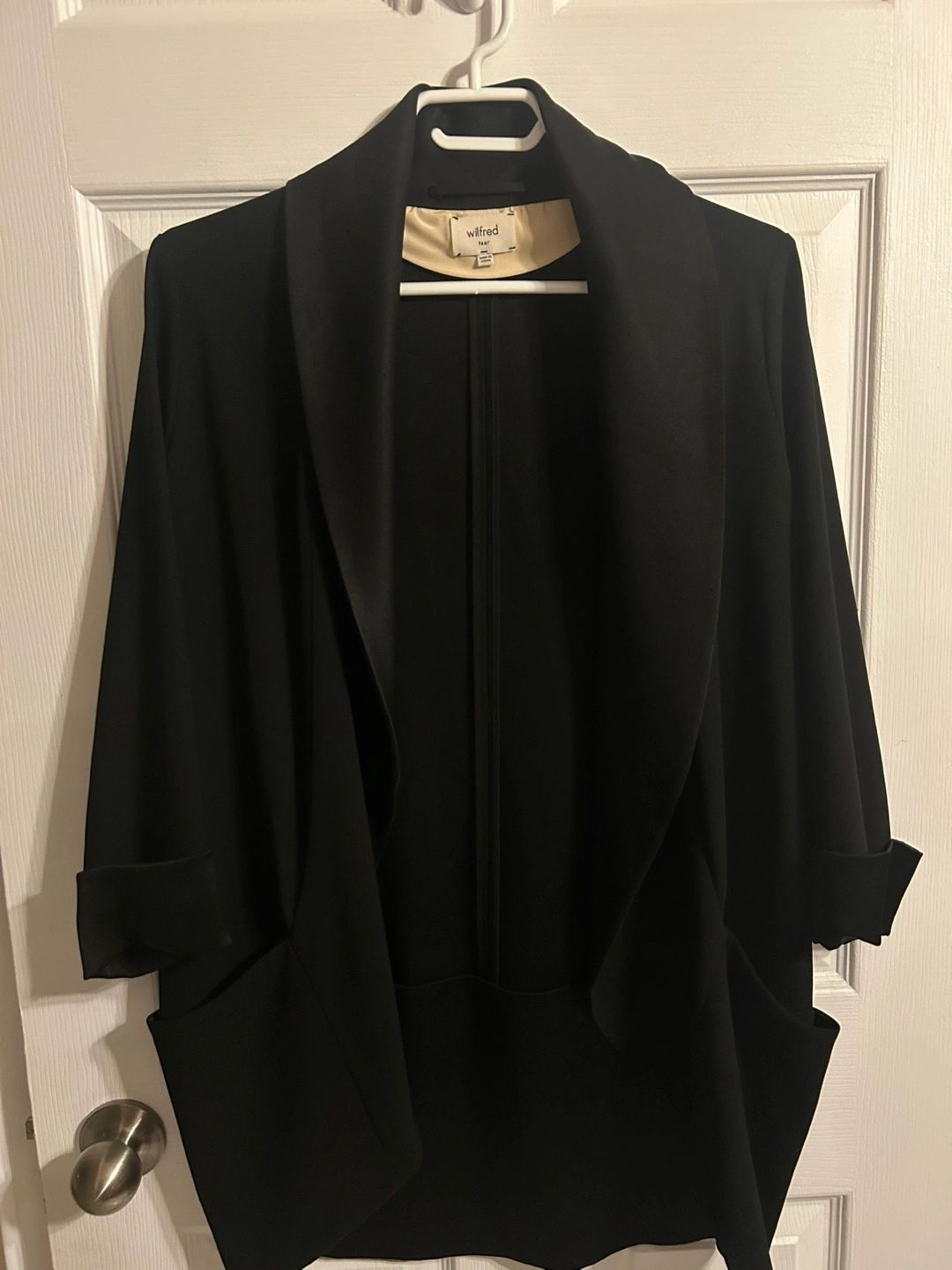 Selling a Wilfred blazer in black, size 4! It's in great condition and made of 82% Triacetate and 18% Polyester