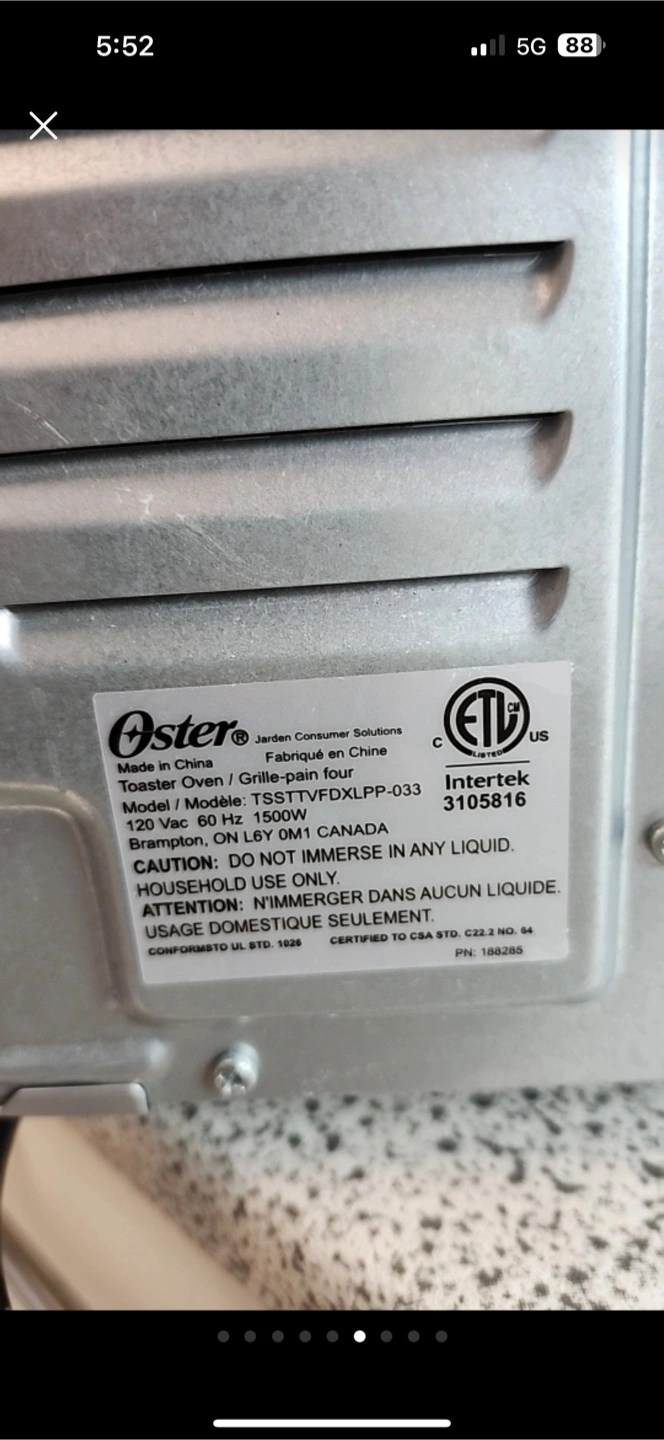Selling an Oster Toaster Oven/Grille-Pain Four. The model number is TSSTTVFDLXPP-033. It was originally purchased online for $299.99. Perfect for small kitchens or anyone who loves a good toast!