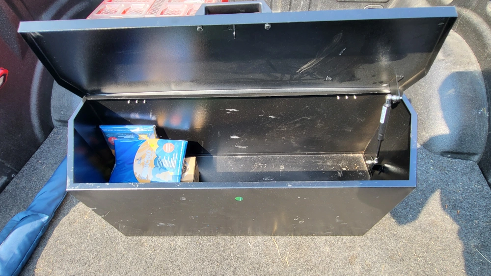 Selling a black truck bed storage box! It's in good condition and ready to keep your gear safe and organized. Perfect for any truck owner looking for extra storage space in their truck bed. Only used for a couple months and have decided to go with packouts instead.
