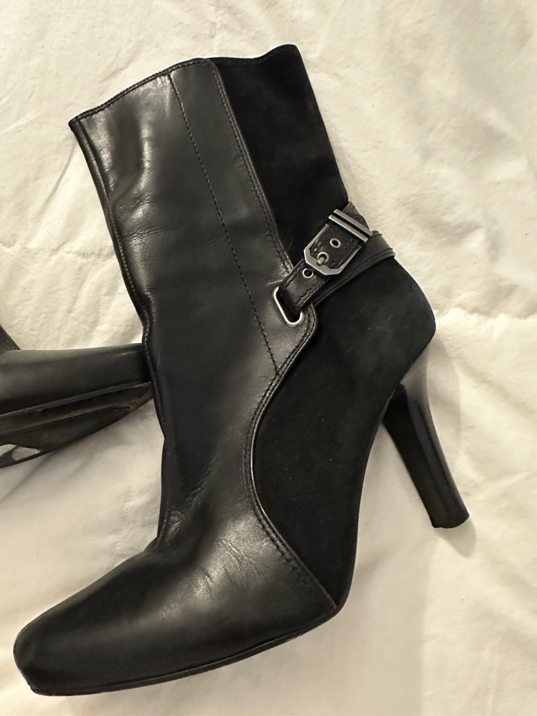 Cole Haan Black Leather and Suede Heeled Ankle Boots - Size 7.5