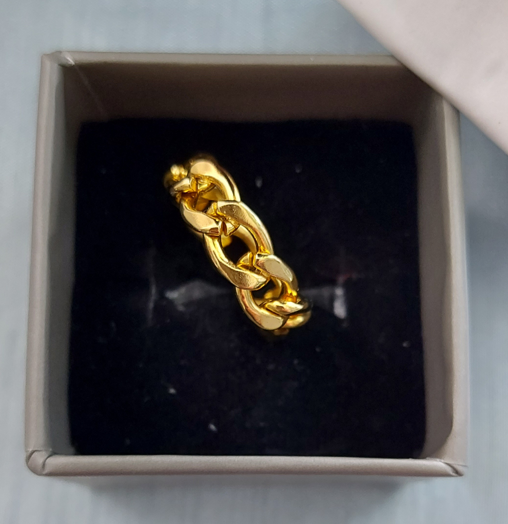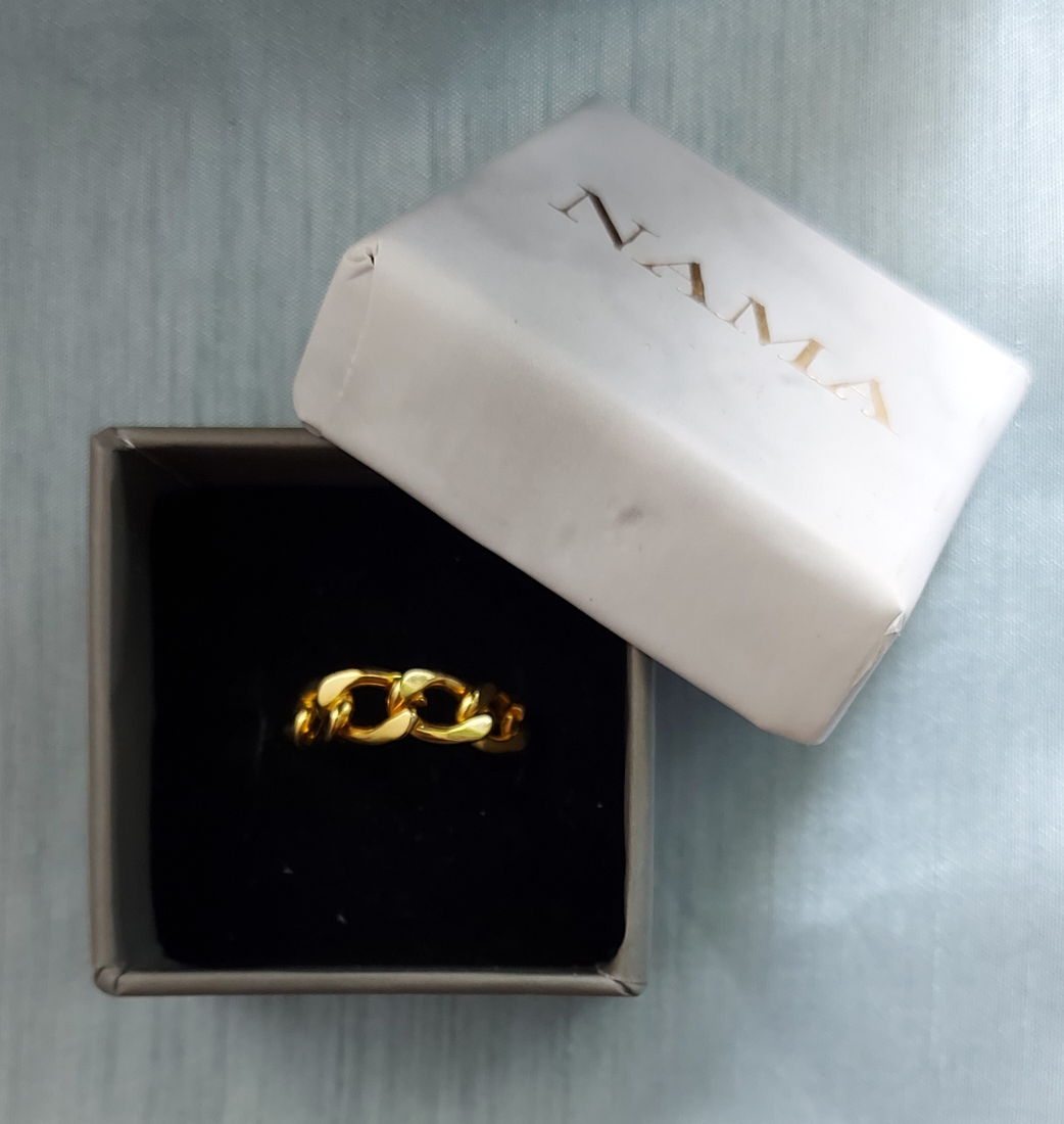 🆕Selling a 18k gold plated chain ring from NAMA. It comes in its original box and is brand new and never worn. A stylish and unique piece to add to your jewelry collection