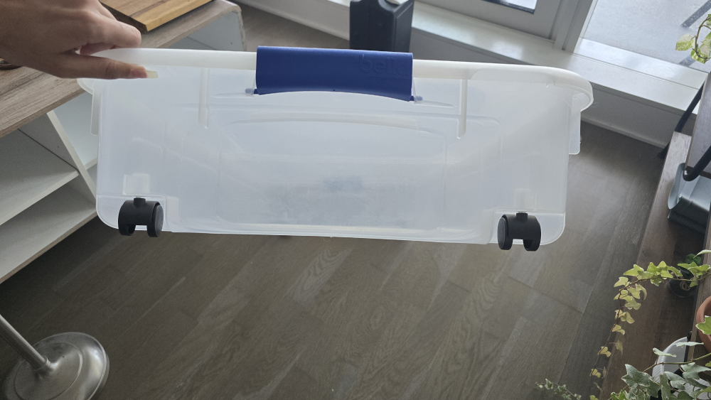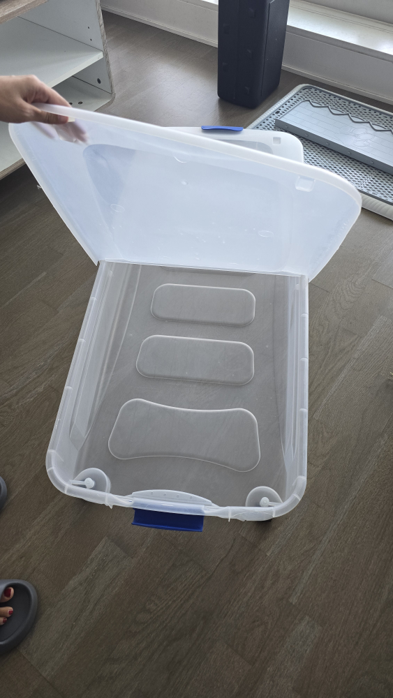 Selling a Sterilite wheeled storage box! It's in great shape and ready to help you organize your space. especially good to store things under the bed.