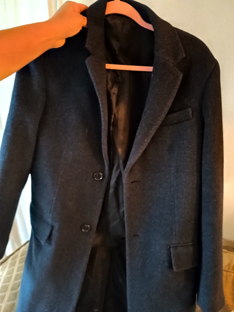 A dark grey wool coat, perfect for cooler weather when you need a refined look! It's in great condition and ready for a new home. Shell is 67% world 28% polyami 5% other.