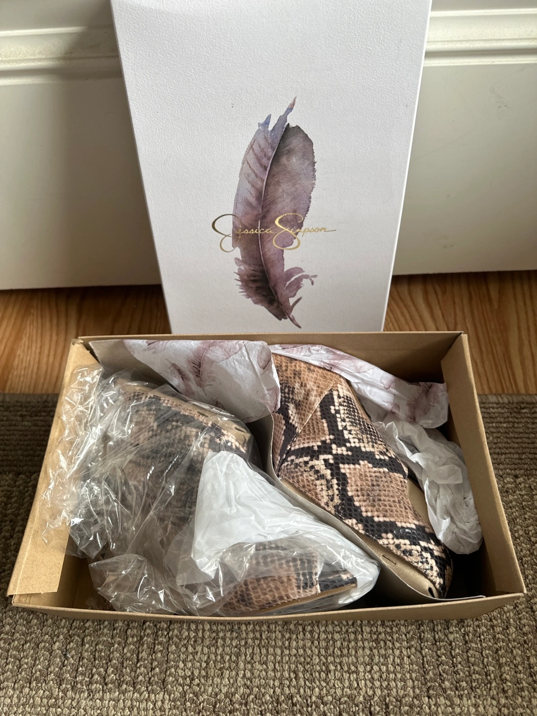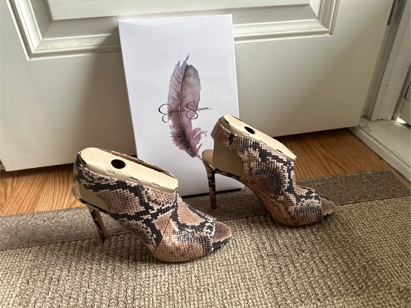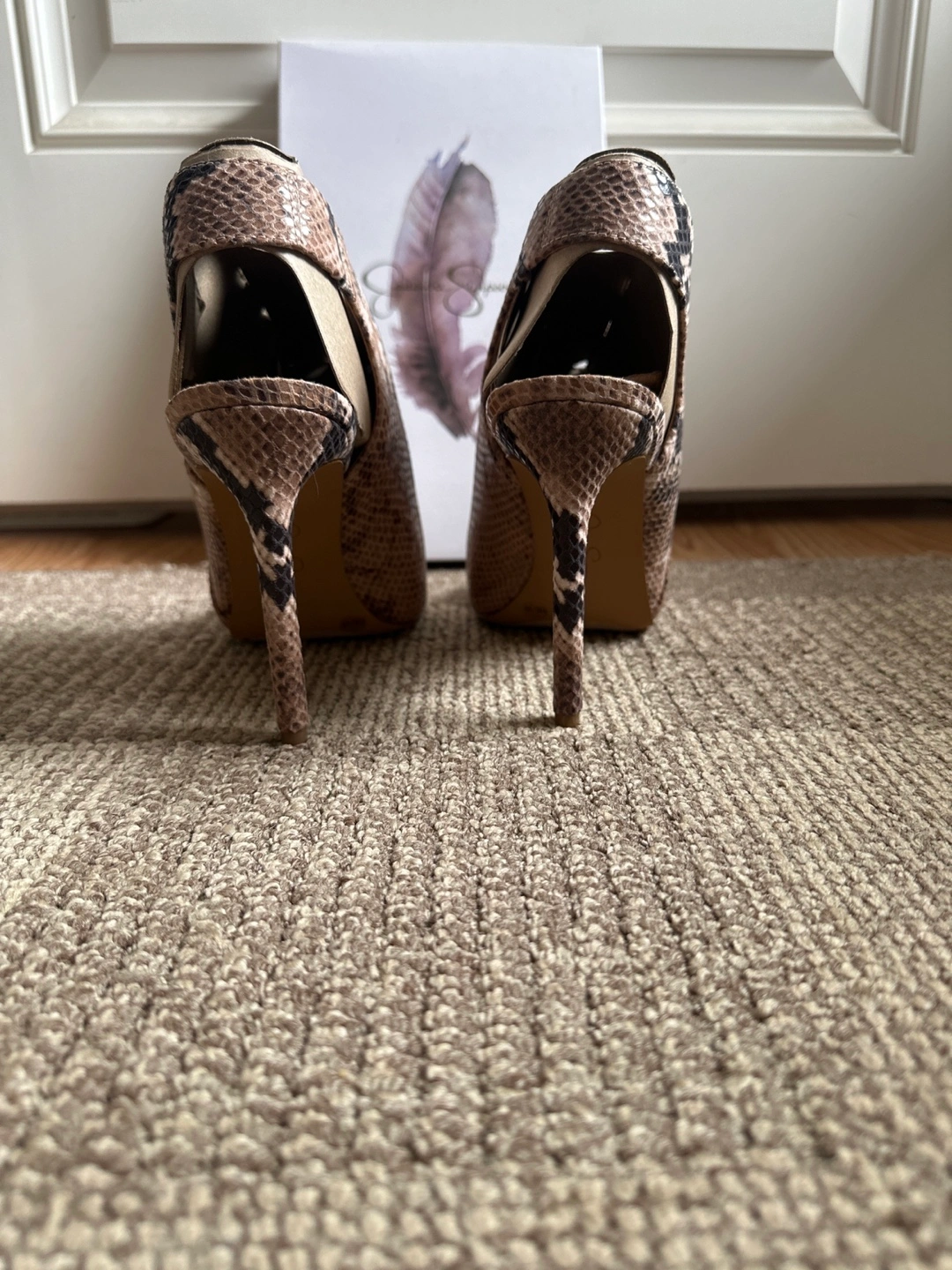 These Jessica Simpson Jelinsia heels are in great condition and ready for a new home! They're a size 9M and feature a stylish multi baja snake print. The colour is a totally taupe combo, making them versatile for different outfits. Comes with the original box!