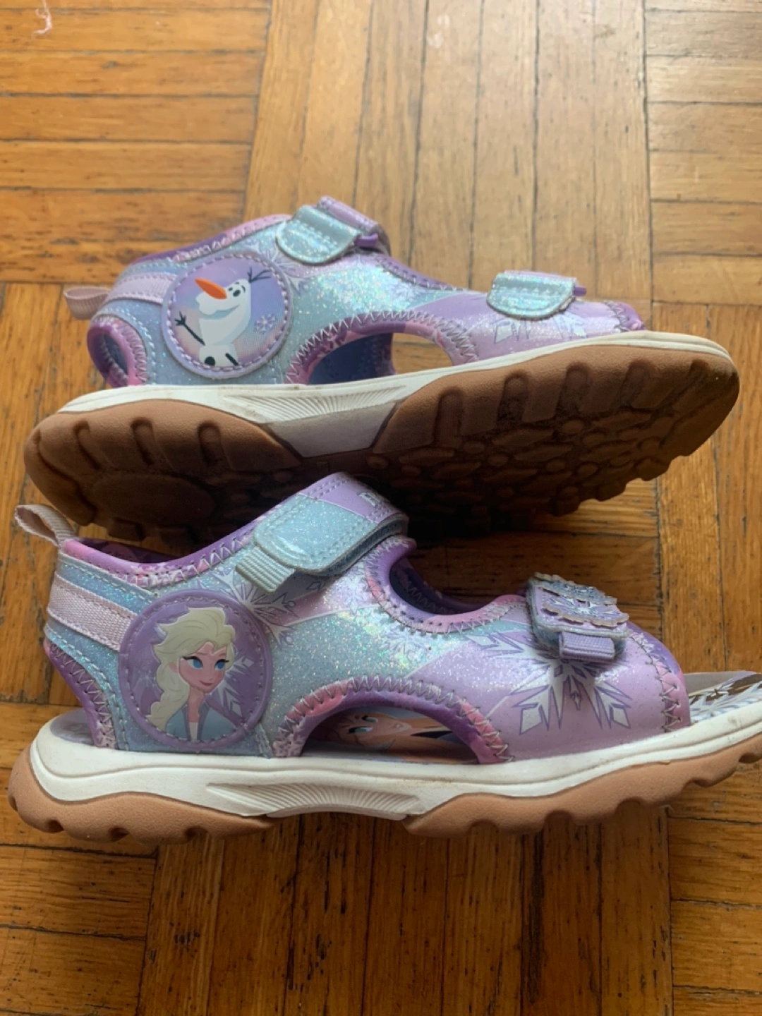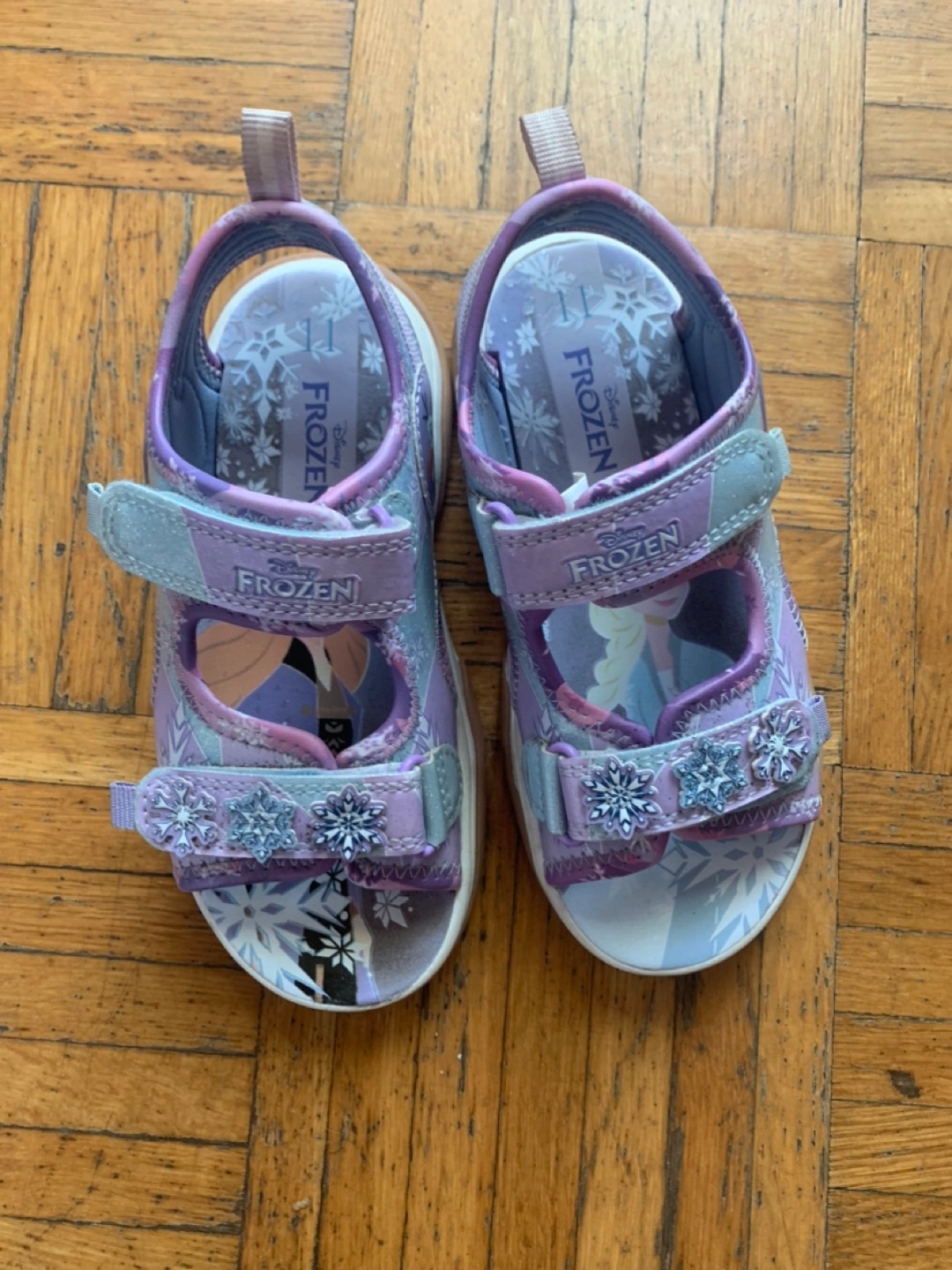 117Cute pair of Disney Frozen sandals featuring Elsa and Olaf! They're in great shape and ready for a new home. Perfect for your little one who loves Frozen!