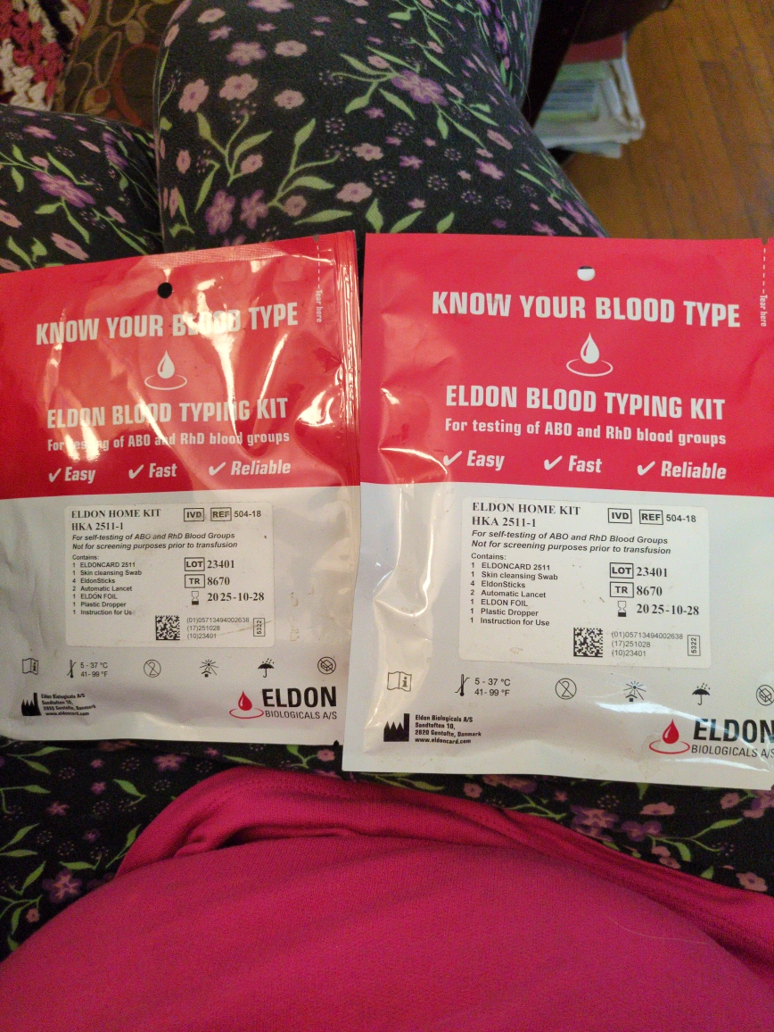 I have two Eldon Blood Typing Kits for testing ABO and RhD blood groups. They are still sealed and in new condition. They normally sell for $20 each.