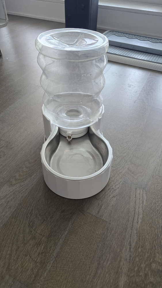 Selling an automatic pet water dispenser. It's in great condition and perfect for keeping your furry friend hydrated. It automatically refills the bowl as your pet drinks, so you don't have to worry about constantly refilling it yourself.