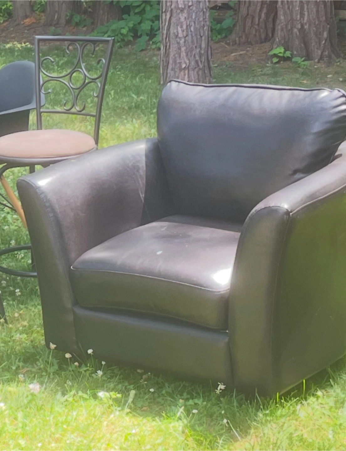 91Super comfortable espresso armchair. In good condition and would be perfect for a living room, bedroom, humancave or dorm room. One small blemish on seat cushion (we covered with a throw), hence the very low price. See our other chairs for sale, as in 2nd pic
