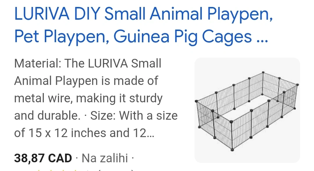 Selling a LURIVA DIY small animal playpen, perfect for guinea pigs or other small pets! It's made of sturdy metal wire and measures 15 x 12 inches.