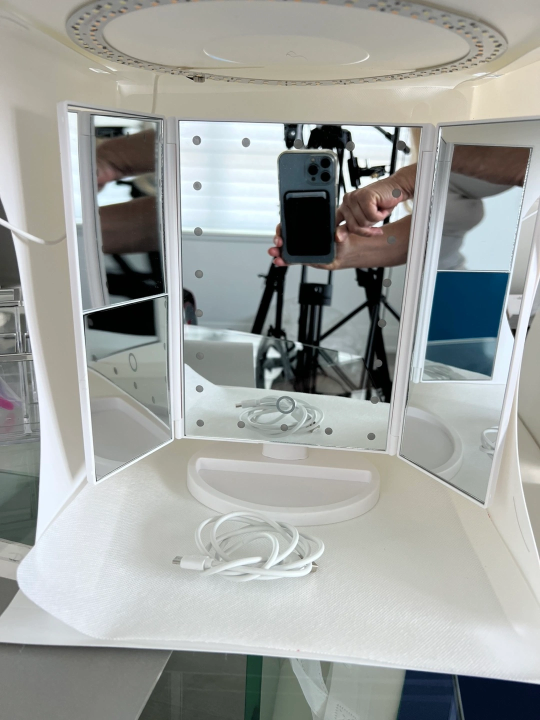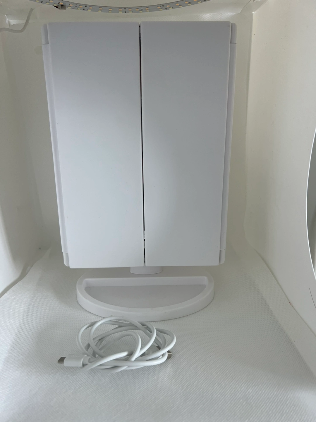 Selling a trifold lighted vanity makeup mirror! It's in great condition and ready to help you achieve your best look. Comes with a USB charging cable