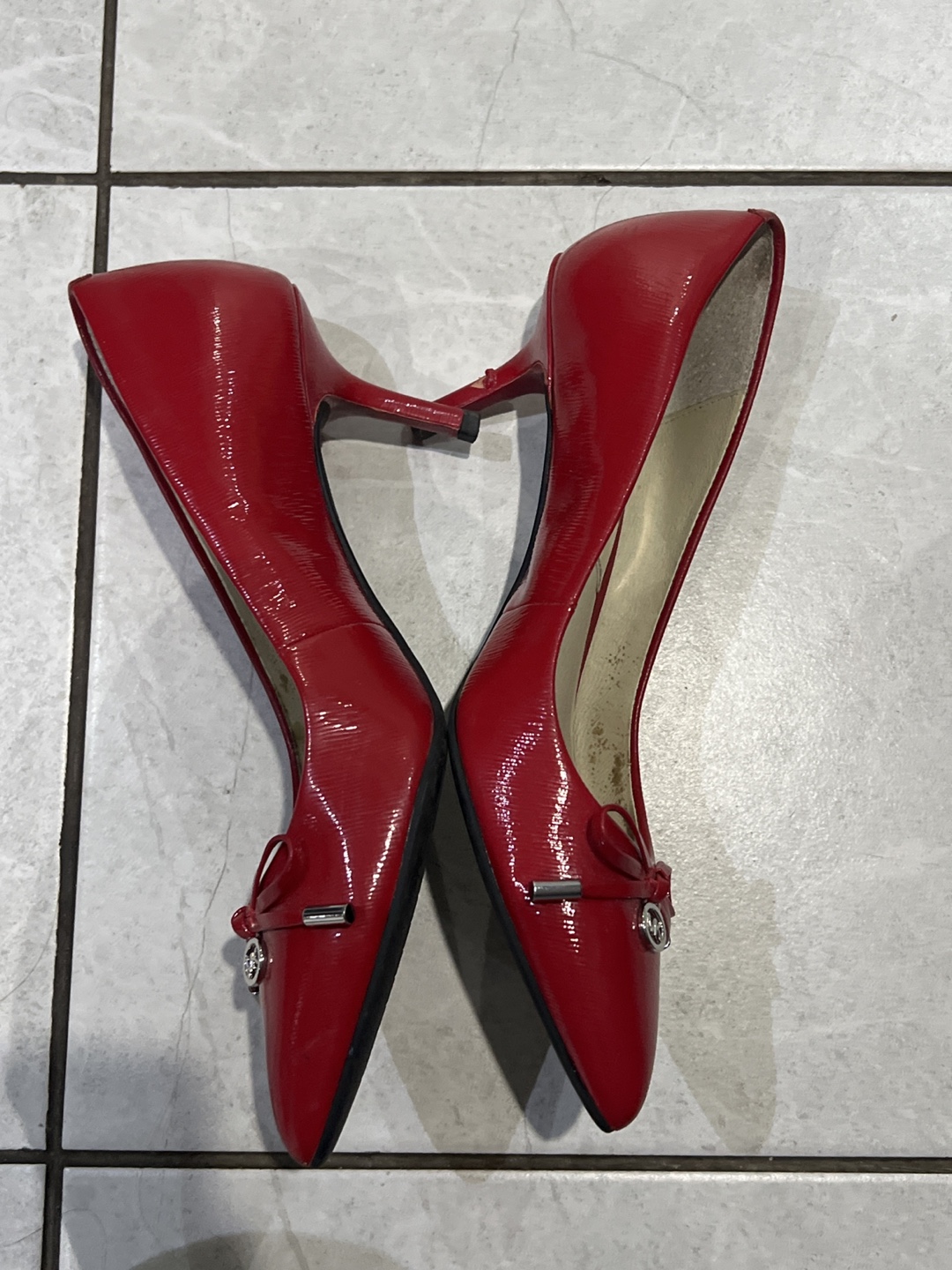 Selling a pair of Michael Kors heels in red! They show some signs of wear, particularly on the heel, but still have lots of life left. Perfect for adding a pop of colour to your outfit!