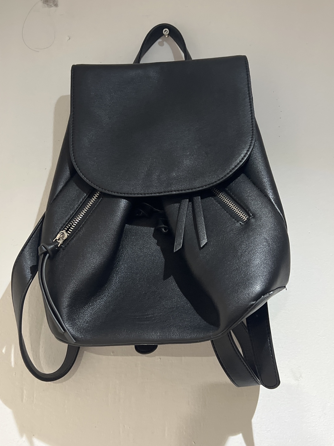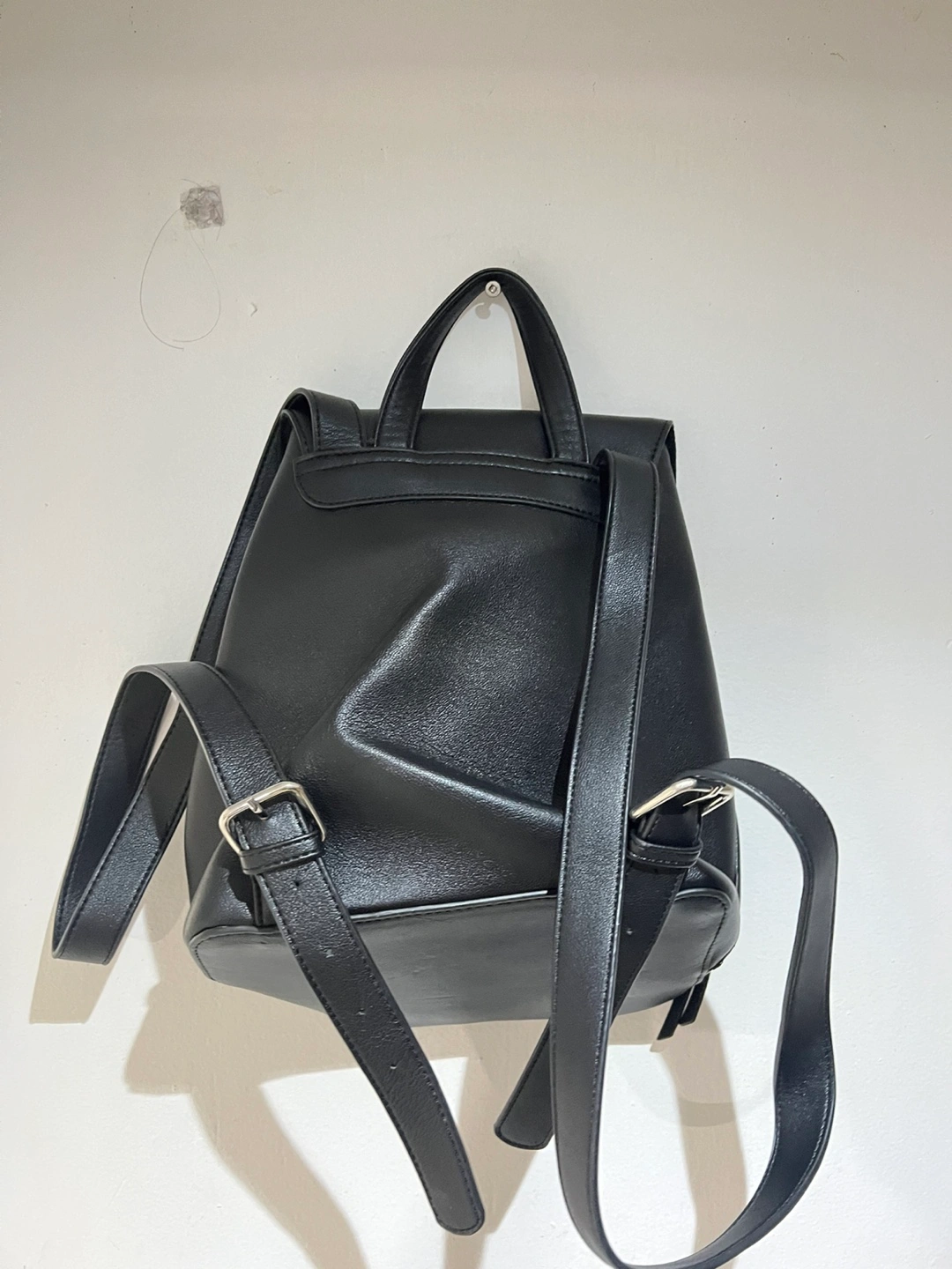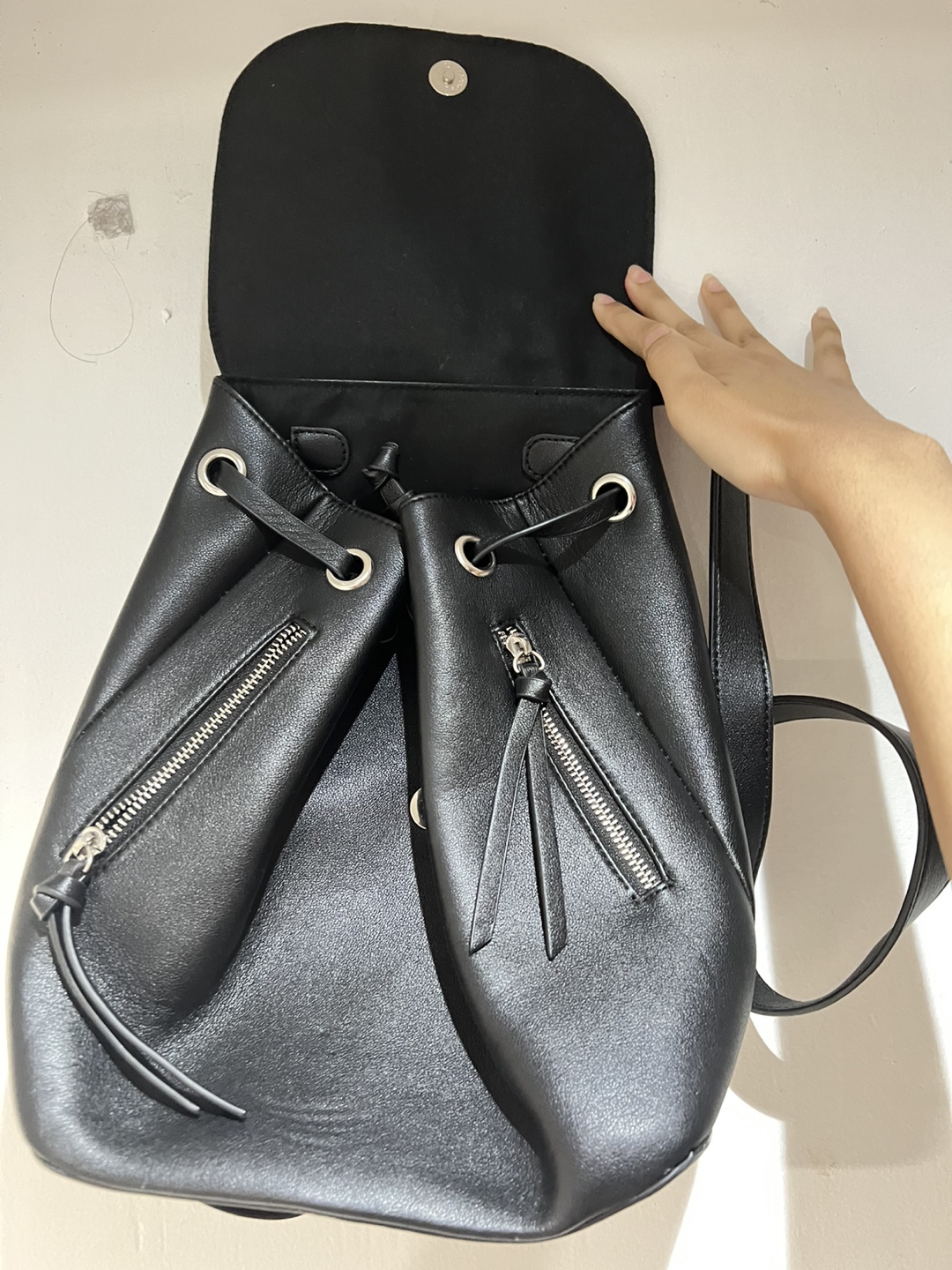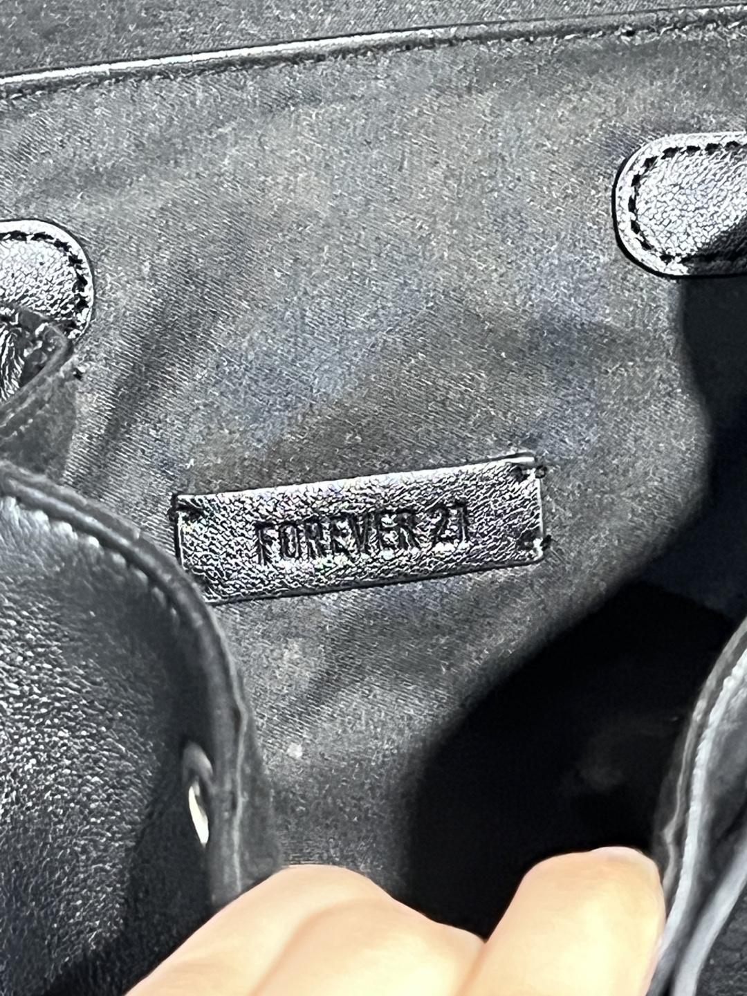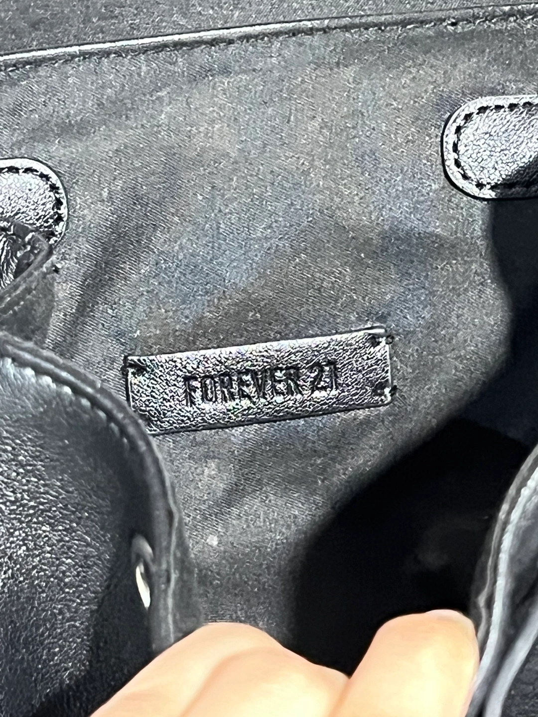 Selling a cute black backpack from Forever 21! It's in great condition and perfect for everyday use. It has a drawstring closure and a flap with a magnetic snap. There are also two zippered pockets on the front