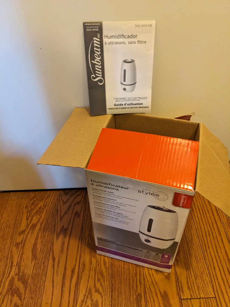 I'm selling a Sunbeam Cool Mist Humidifier. It's in great condition and ready to use! It's perfect for adding moisture to the air, especially during the dry winter months. It's easy to fill and operate, making it a convenient addition to any room