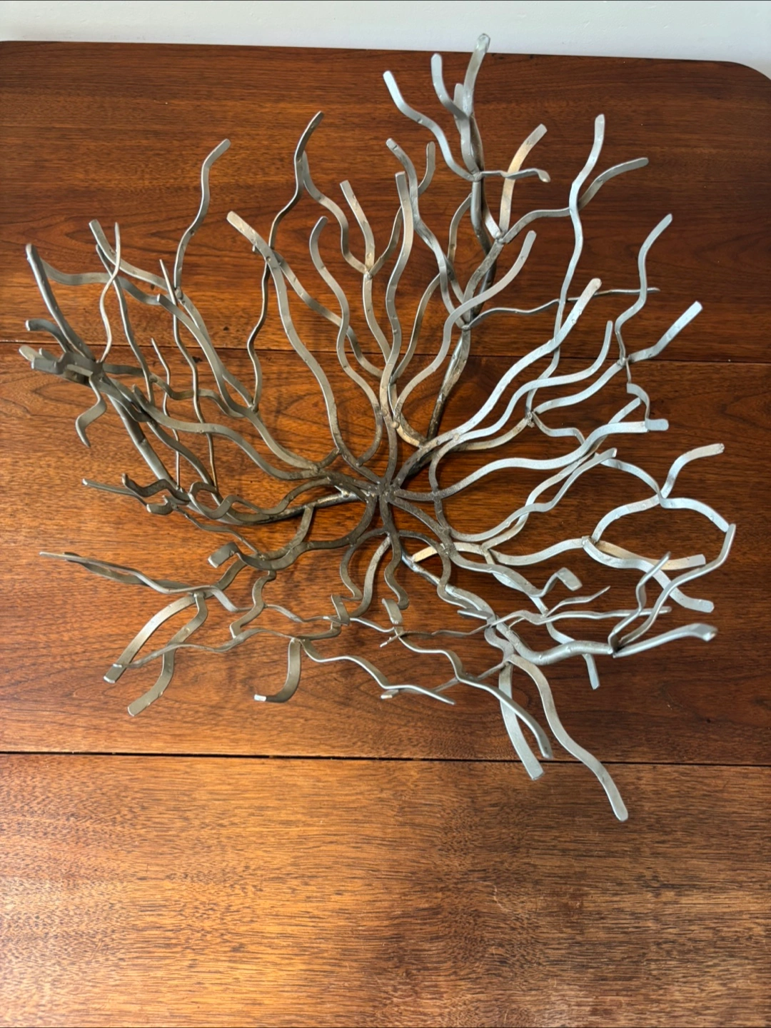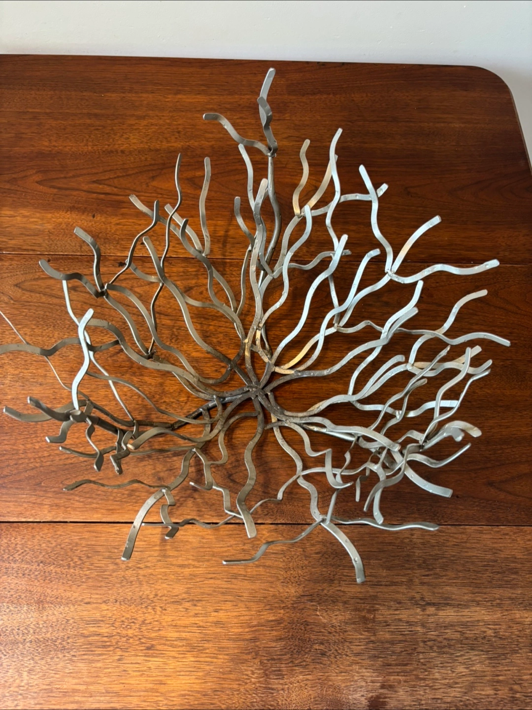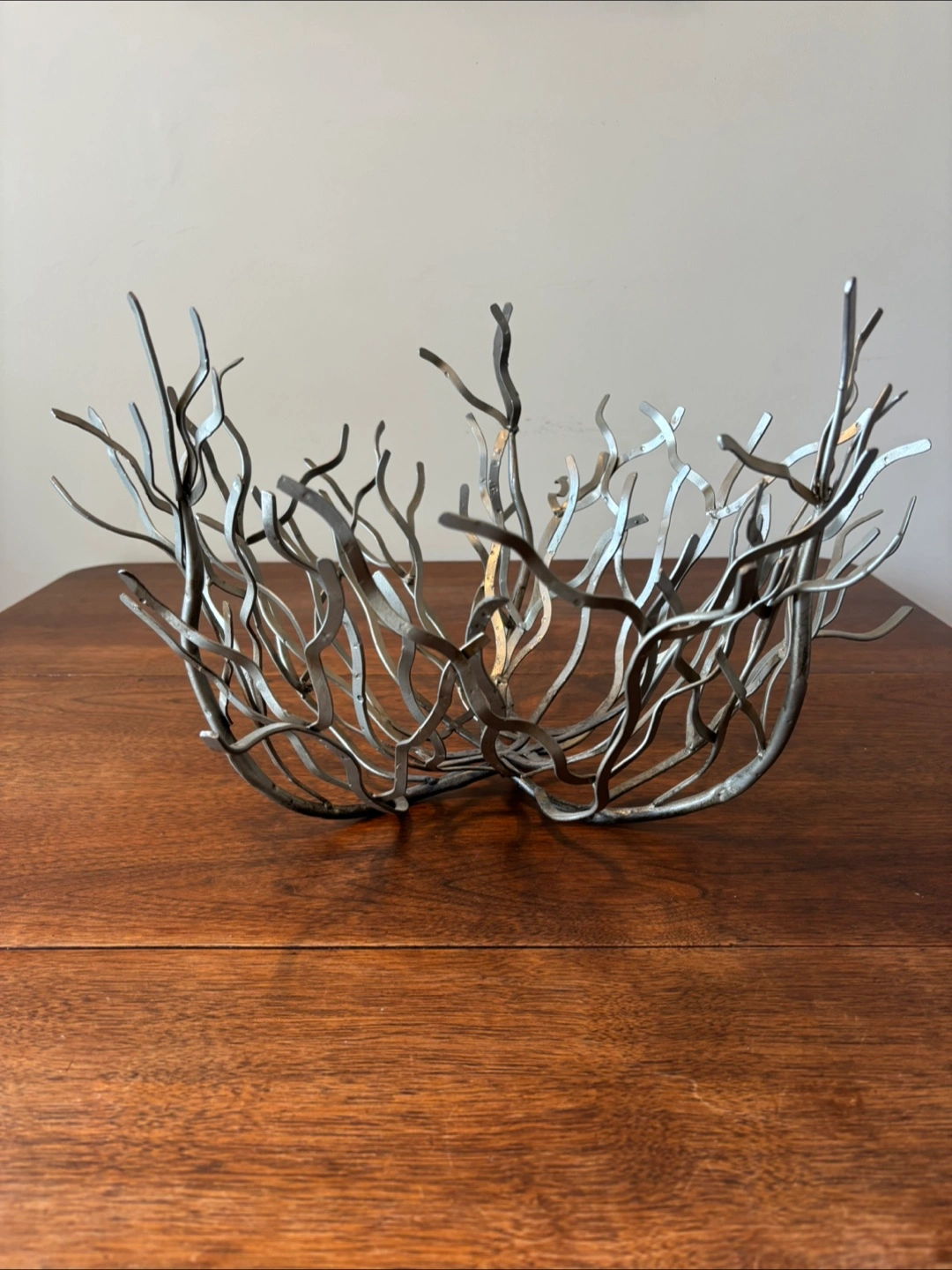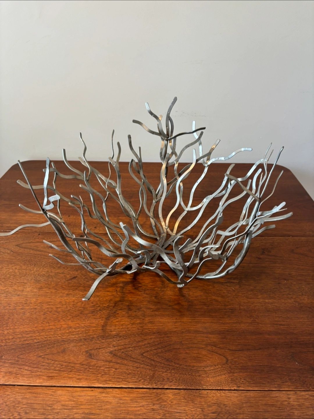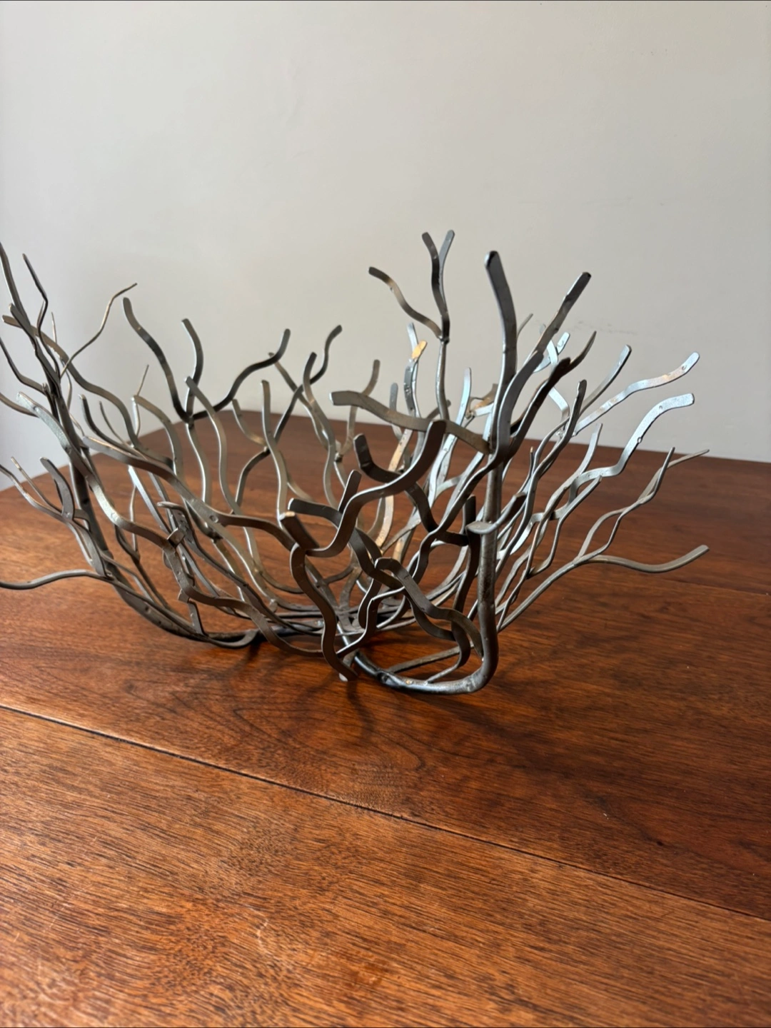 This is a unique metal decorative bowl that would look great as a centerpiece or accent piece in your home. It's in good condition and ready to find a new home! 11” tall and 17” wide. Cash only.