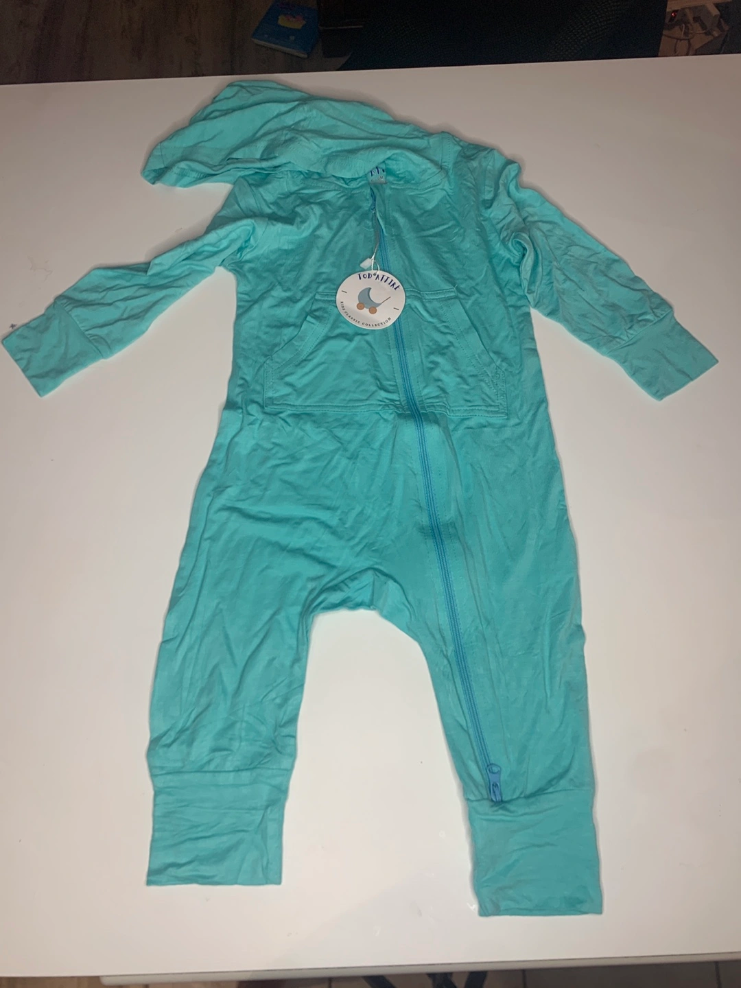 This adorable Tod Attire romper is made from a soft and breathable blend of 95% bamboo fibre and 5% spandex. It's in excellent condition and ready for a new little one to enjoy. The size is 6-9M