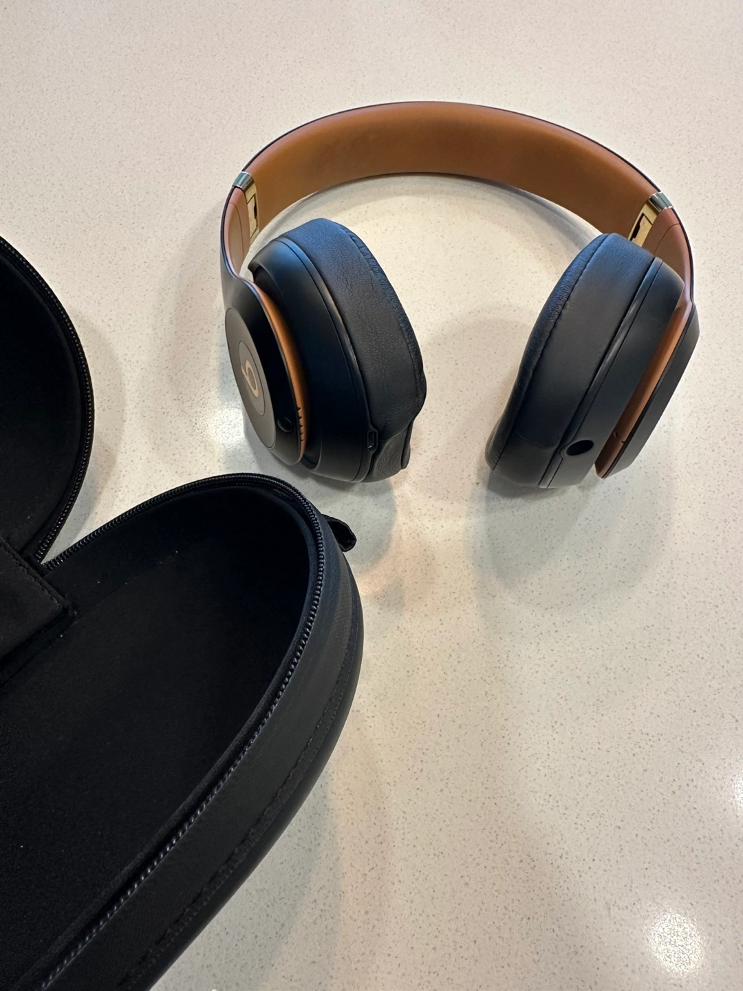 Selling a pair of Beats Studio3 Wireless headphones in Midnight Black. They come with the original box and carrying case. These headphones offer excellent sound quality and noise cancellation, perfect for music lovers! The box includes the headphones and the case.